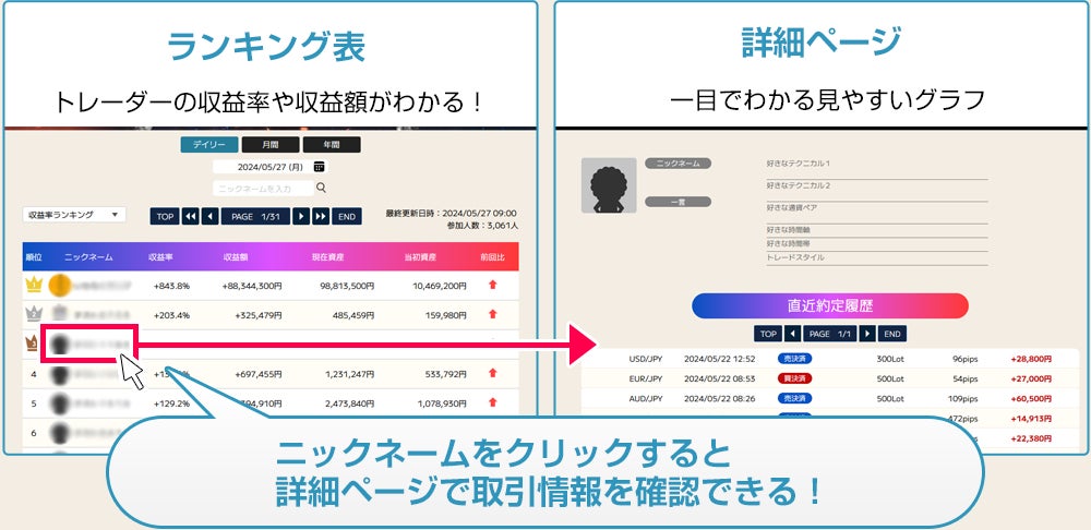 さらにニックネームをクリックすると参加者のトレード情報を見ることができます。何かヒントを得ることができるかも!?