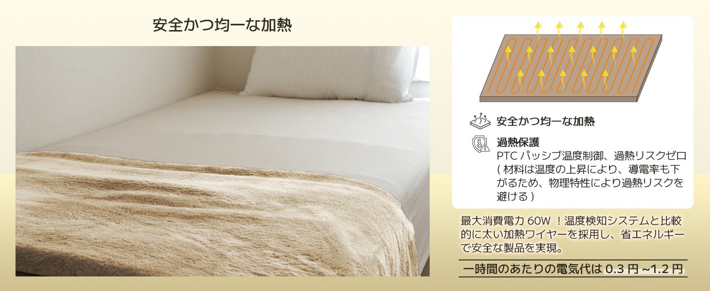 【安全性高い・UL認証済み加熱ワイヤー採用・PSE認証済み】