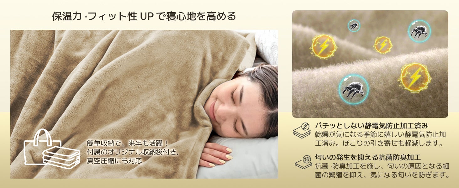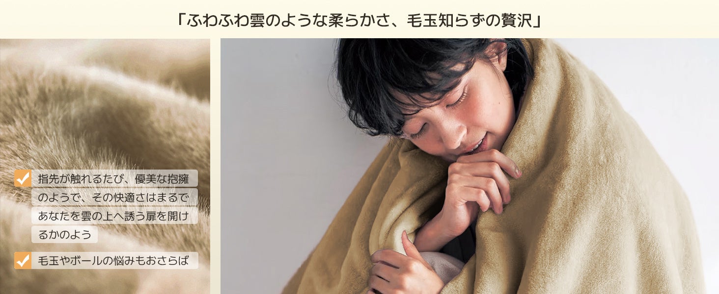 【ふんわり、ぽかぽか。うるおいタッチでしっとり暖かい!心地よい肌ざわりの掛け敷き兼用毛布】