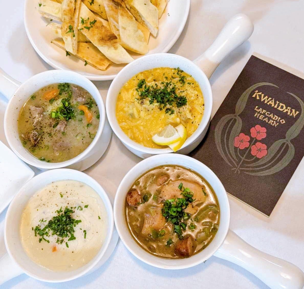 松江に暮らした文豪、小泉八雲が幼少期を過ごしたアイルランドと交流のある松江に拠点を置き、松江が『リトル(小さな)アイルランド』になるよう、目指しているアラン。八雲の妻・セツをモデルとする朝ドラが来年の春からクランクインし、秋から放送されることが決定したことを記念して、八雲が旅した各地のシチュー(アイルランド=ラムシチュー、ギリシャ=アヴゴレモノスープ、ニューオリンズ=ガンボ、島根=宍道湖しじみのシーフードチャウダー)を新たなセットメニューとして近日公開予定です。
