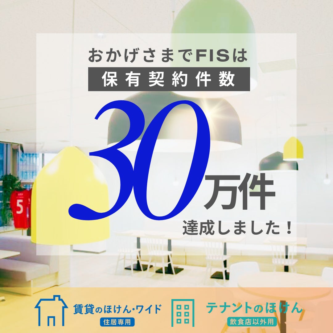 フレックスグループ株式会社(本社:東京都新宿区、代表取締役CEO:渡邊圭介)のグループ会社で、賃貸入居者向けの家財保険を提供する少額短期保険会社の株式会社FIS(本社:東京都新宿区、代表取締役:立見秋司、以下「FIS」)は、保有契約件数が2024年8月末時点において30万件を達成しましたことをお知らせします。
