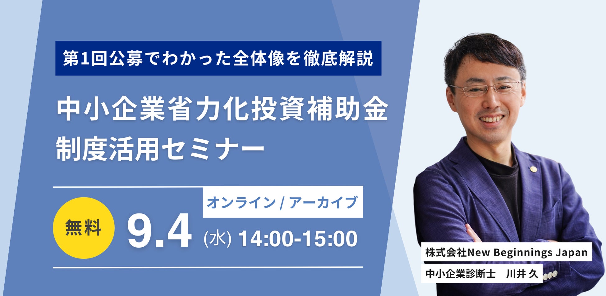【無料/録画提供あり】国が認定する士業等専門家による「中小企業省力化投資補助金」のセミナーを9/4(水)に開催