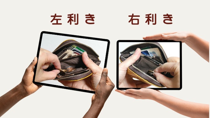 ※がま口のひねりの向きも変えた、左利き用もお選びいただけます。