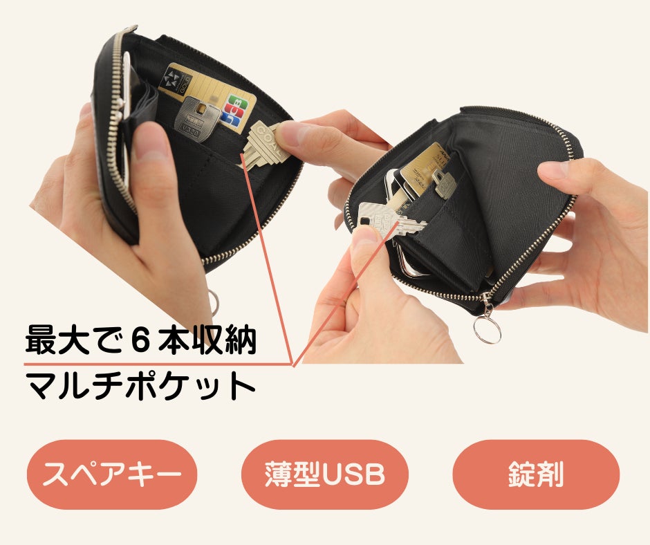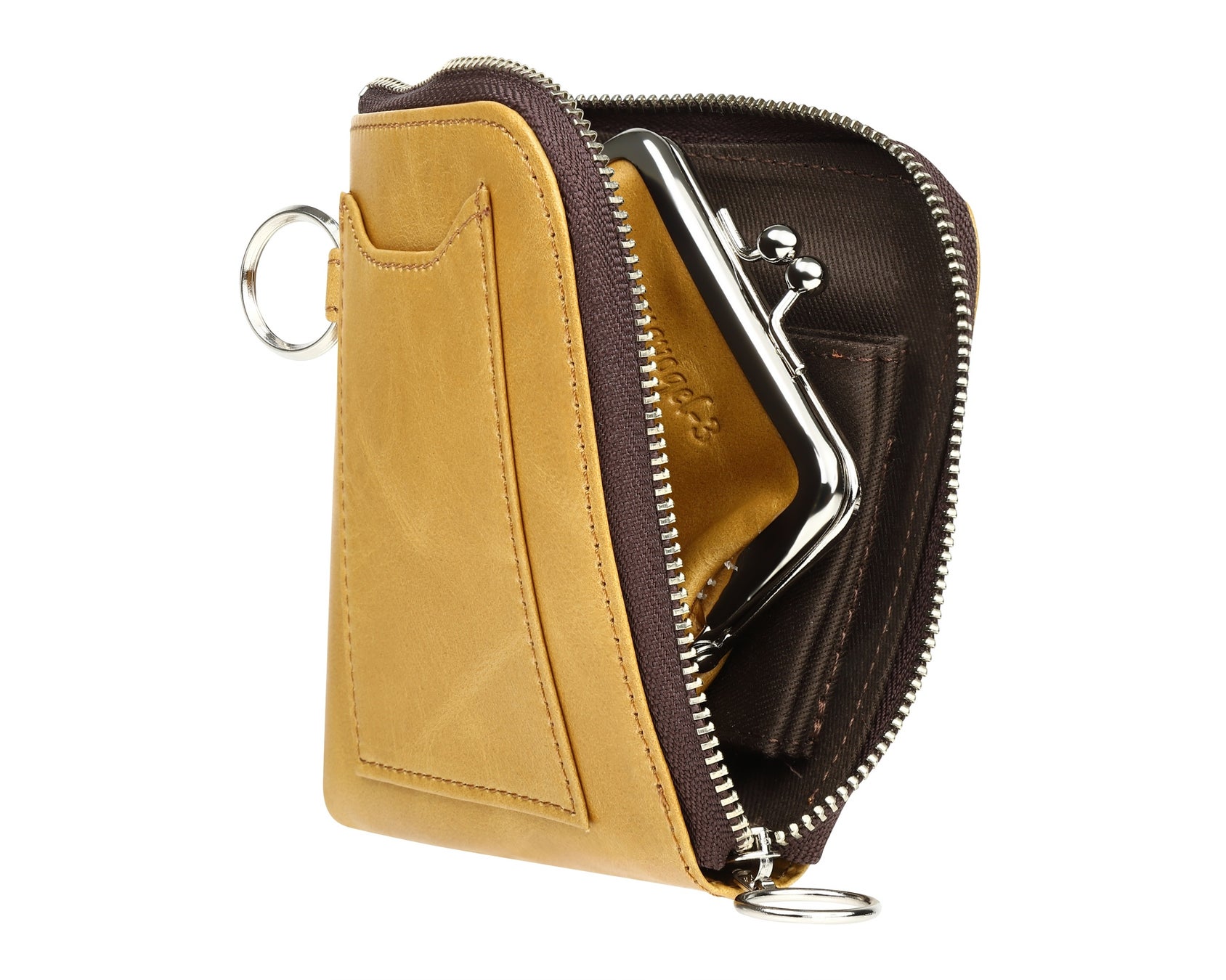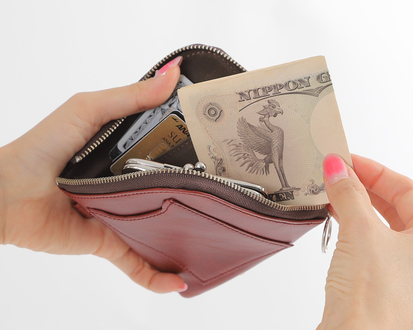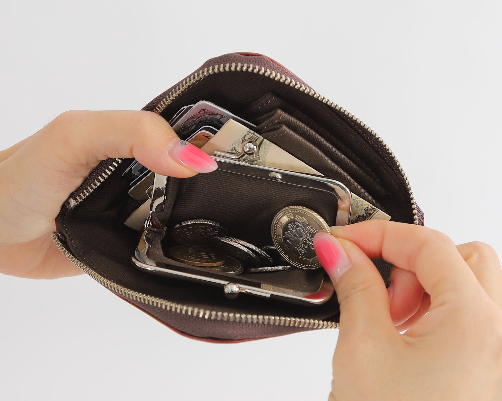 シンプルな見た目だけどありそうでなかった財布。L字ファスナーのコンパクトな財布の内側に斜めに配置されたがま口小銭入れという構造こそが「神のような速さのコンビニレジに勝つ財布」の一番の特徴です。
