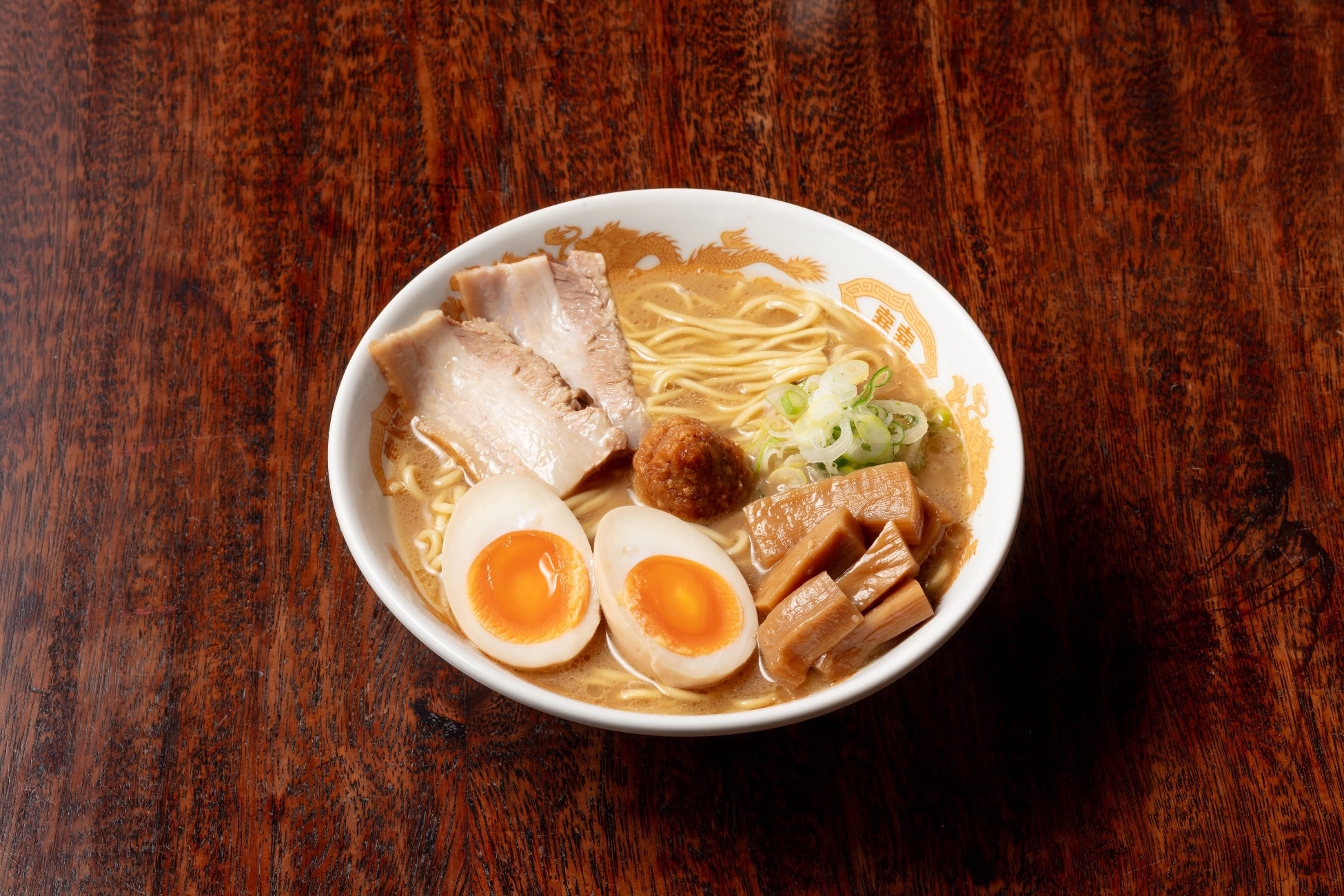 じっくりと煮込んだ動物系のスープと和風だしをあわせたスープに