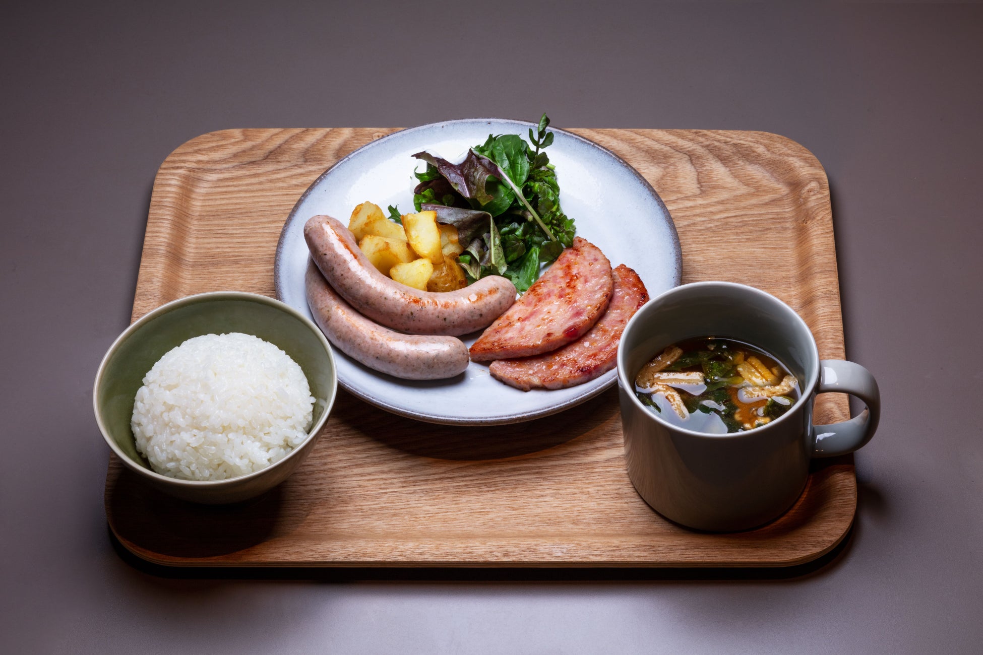 朝食には、和朝食と洋朝食の両方をご用意。和朝食では、山吹味噌の風味豊かな豚汁をはじめ、鶏の味噌漬焼き、ご飯といった、日本ならではの朝の食卓を楽しめます。一方、洋朝食にはトースト、目玉焼き、ソーセージなどをラインナップし、軽やかでエネルギッシュな一日のスタートをサポートします。