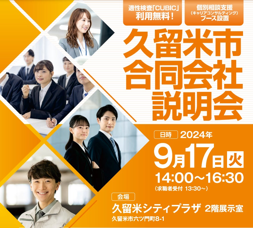 久留米市雇用・就労推進協議会が主催する本イベントは令和7年3月卒業予定の学生や一般求職者を対象に、久留米市内企業が直接会社説明を行い、久留米市への就職を促進することを目的としています。