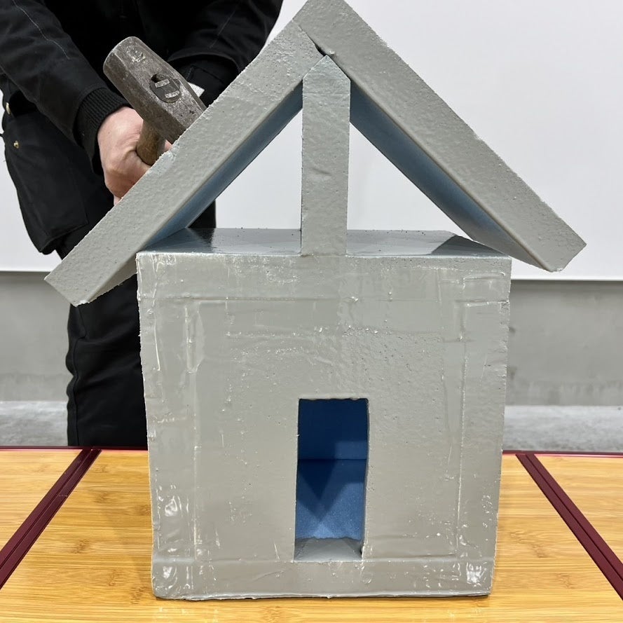 3.完成した簡易ハウスはハンマーで叩いても大丈夫。カチカチの状態になります。