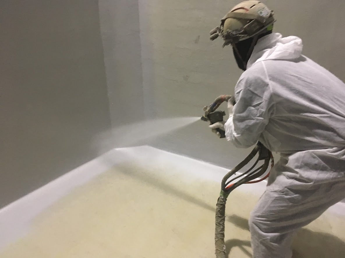 開発塗料『レッドコートUS』は2つの塗料を特殊機械にて混合し、吹き付け型の塗料です。塗装後約2分で乾燥する超速硬化塗料となり、塗膜は硬く柔軟性に優れた相反する特徴を持ち衝撃、摩耗に強く、耐候性・耐薬品性・耐荷重など、塗料が劣化、剥離する様々な外的要因に対応できることが大きな特徴です。塗装の厚みは1㎜以上となります。