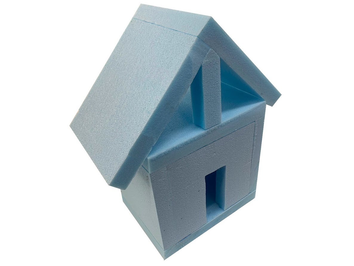 1.簡易ハウスの各パーツにあたる発泡スチロールへ吹付け(簡易ハウスは細かなパーツに分解された状態です。)この時点で発泡スチロールが強化されていく過程をご覧いただけます。