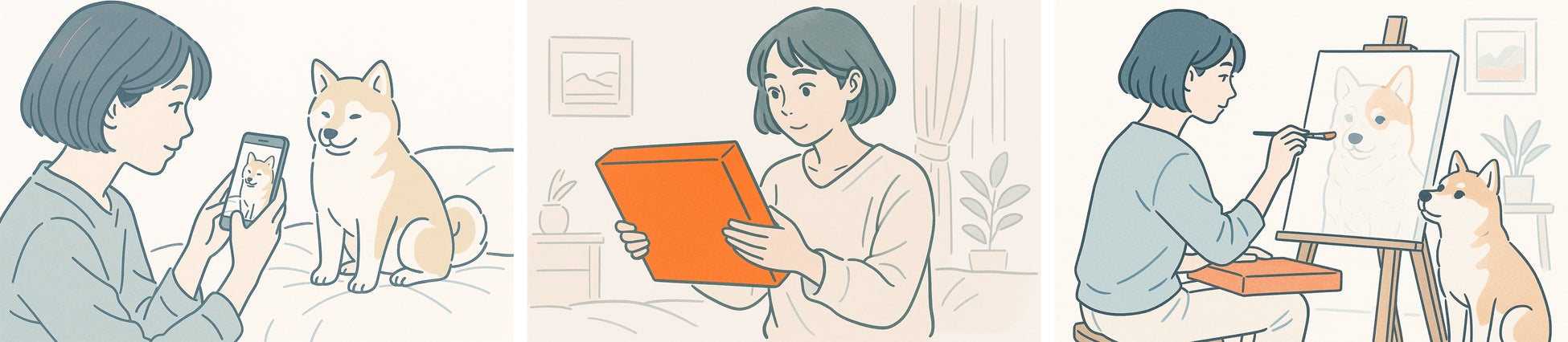 初心者の方でも本格的な絵画作品が描ける!写真をもとに、自分の手で描くアート体験。専用のキャンバスと絵の具セットをご自宅にお届けします。