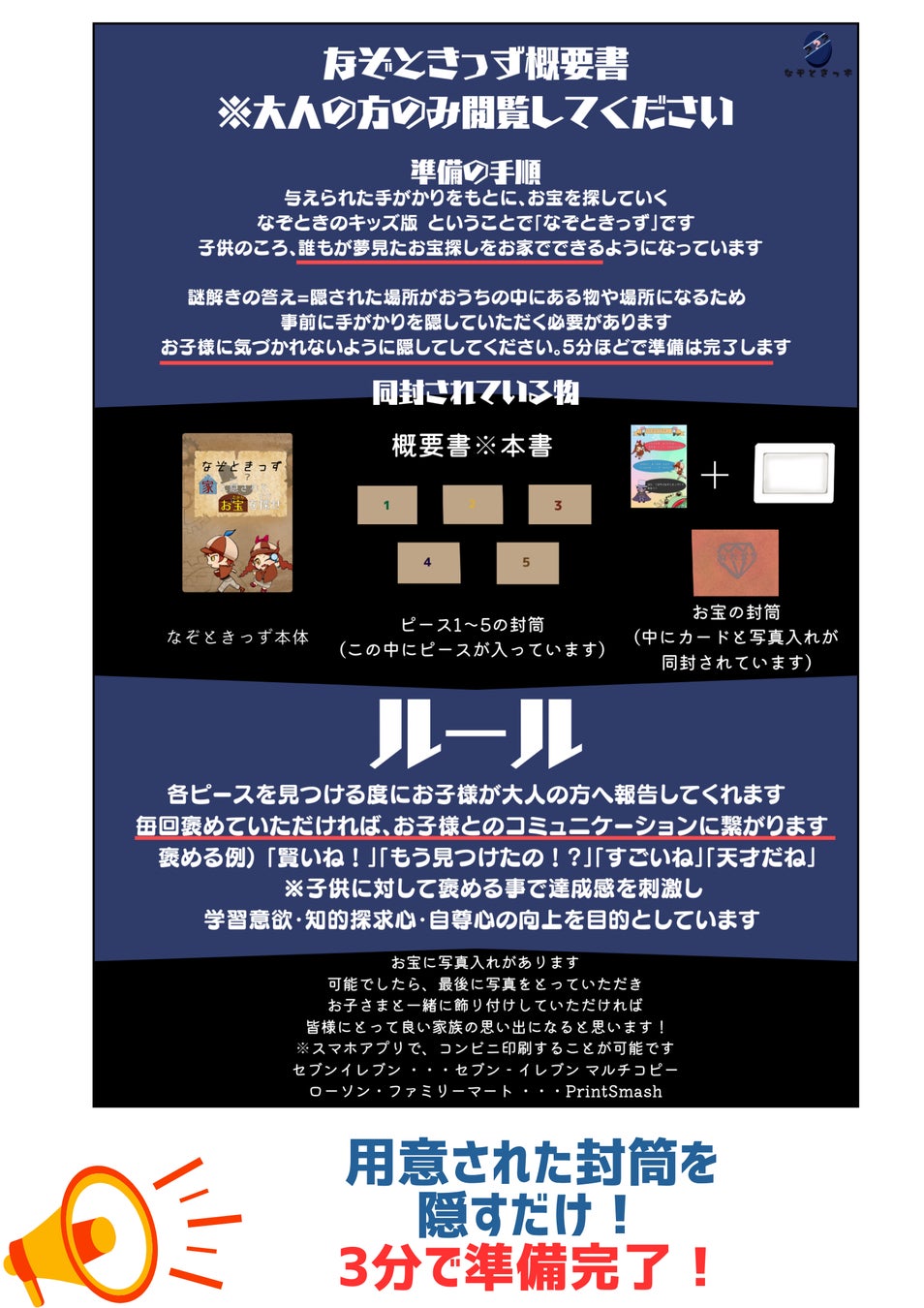 商品概要:小学生向け お家で遊べる謎解き&宝探しキット