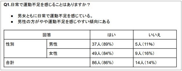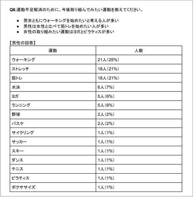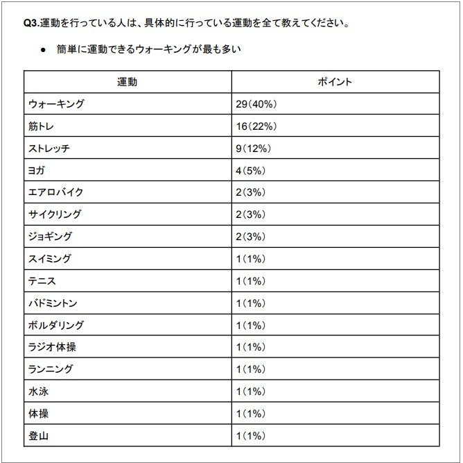 運動不足解消に関する調査のサマリは下記のとおりです。