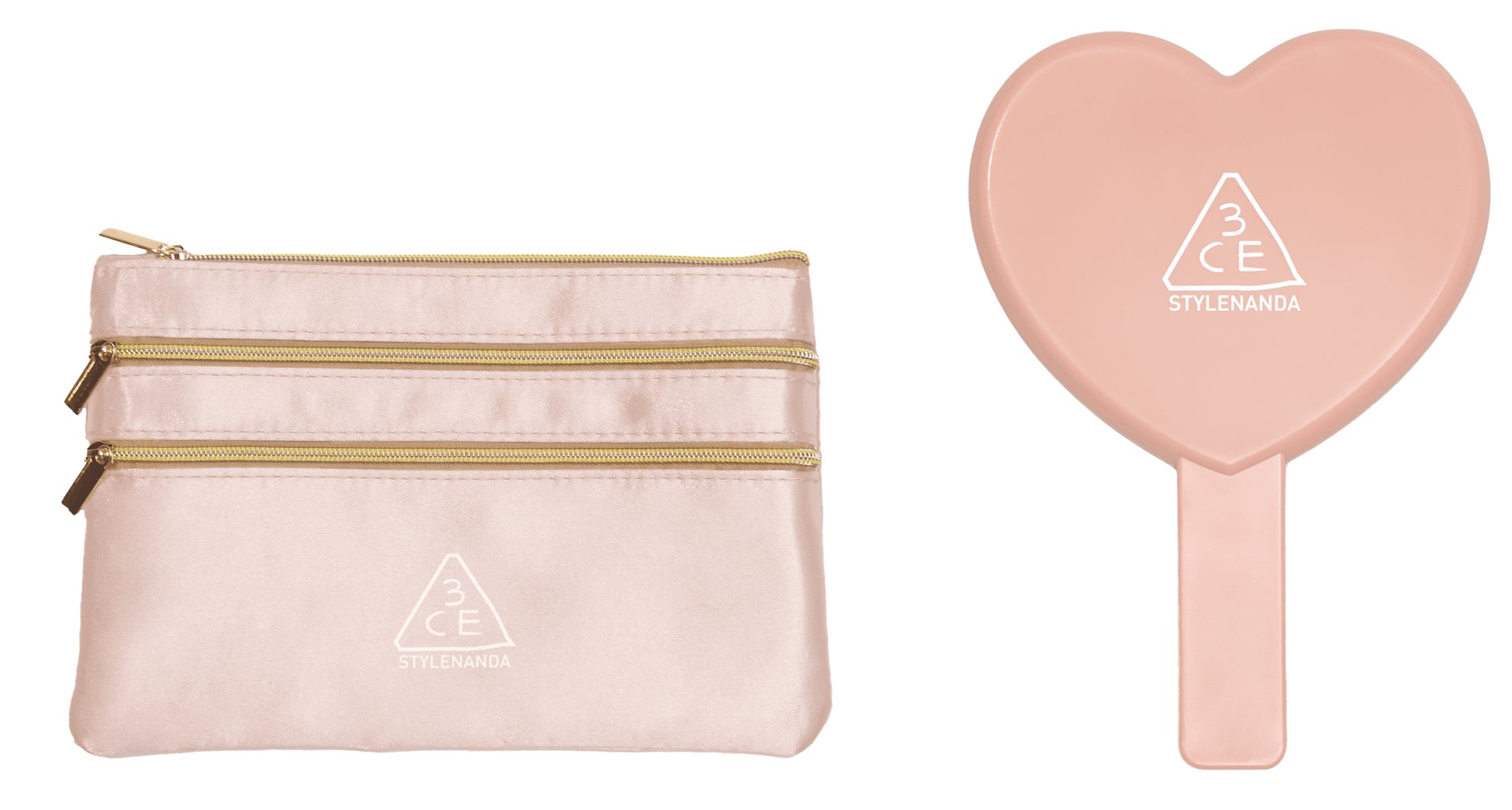 ②3CE「ニューテイク アイシャドウパレット」1点を含む3CE商品を2点以上ご購入の方に「3CE ポーチ」または 「3CE ハートミラー」プレゼント