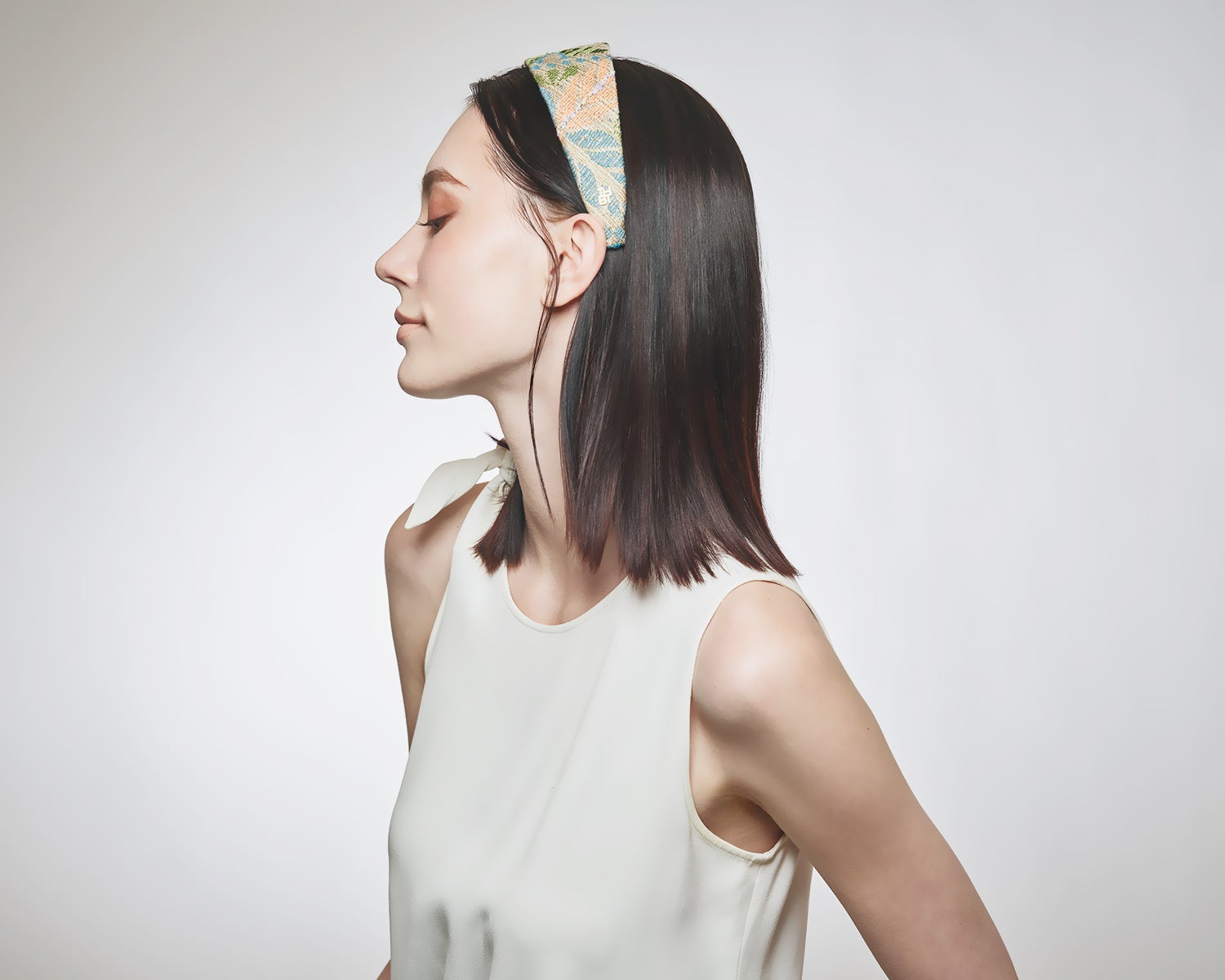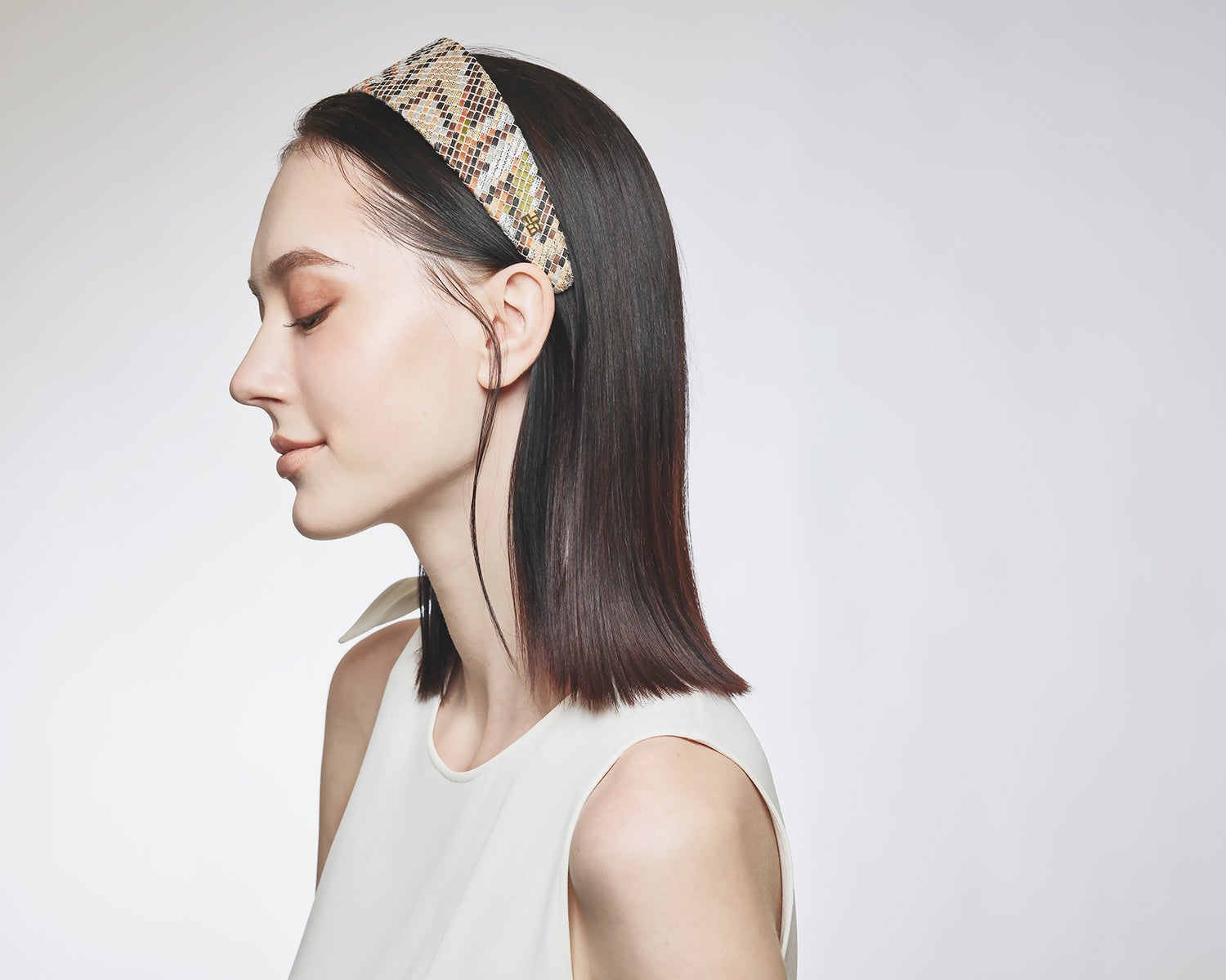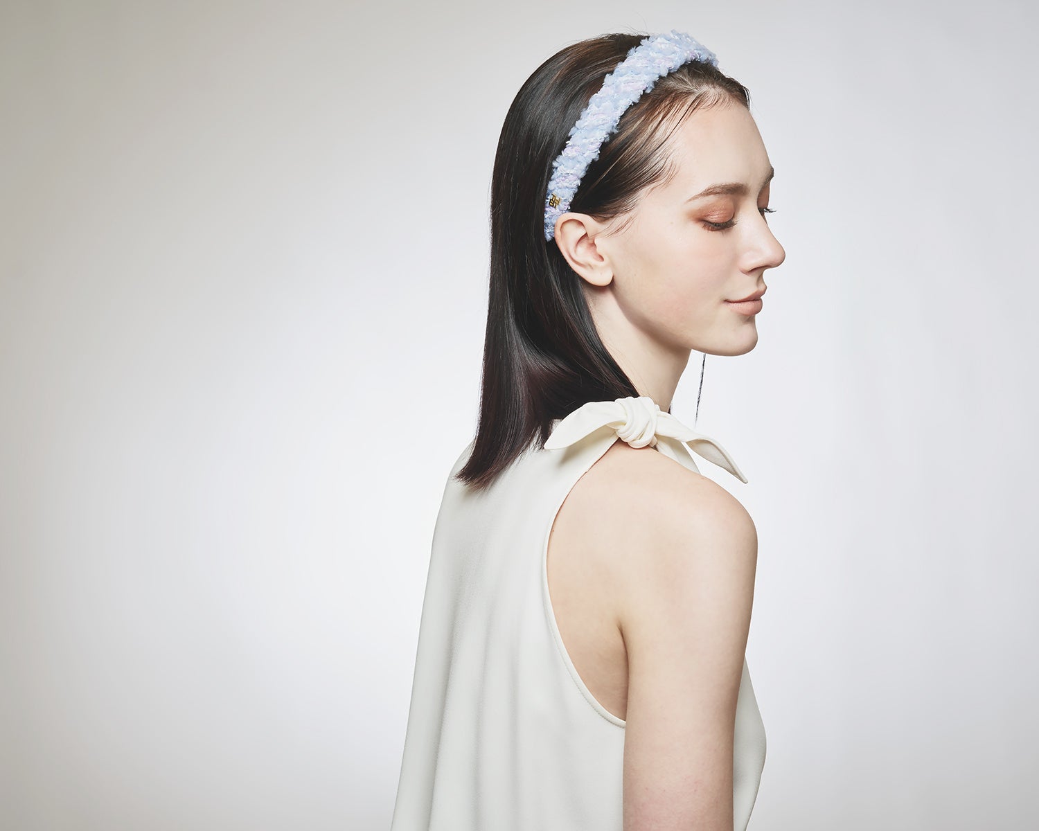ヘアアクセサリー。カチューシャは生地を斜めに