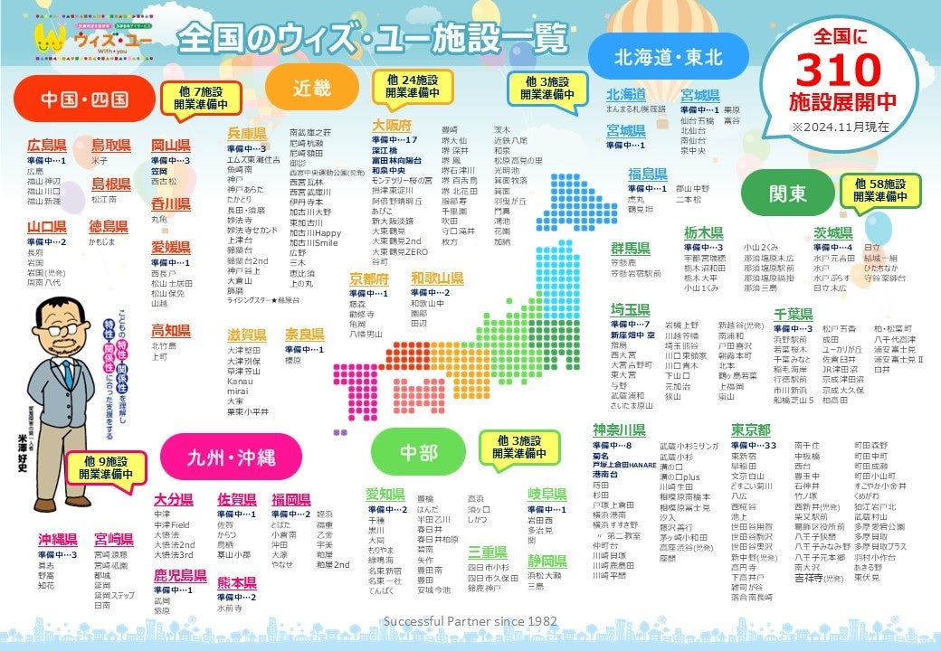 2024年11月1日時点で、「ウィズ・ユー」は310施設(直営5施設、FC加盟305施設)展開することになりました。