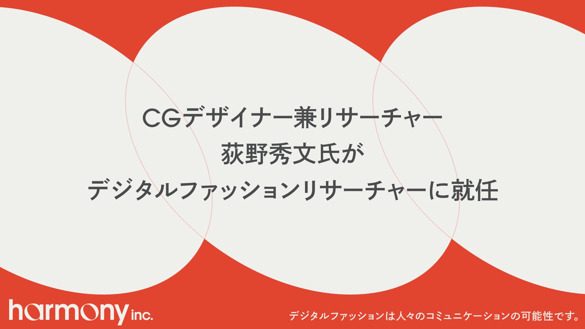 株式会社harmony(本社:東京都港区、代表取締役CEO:原島篤史)において、デジタルファッションの技術と文化を調査、探究するデジタルファッションリサーチャーとして、デジタルファッション領域において豊富な実務経験を持ち、SNSで積極的に発信を行っている荻野秀文氏(通称「f」氏)が就任いたしました。