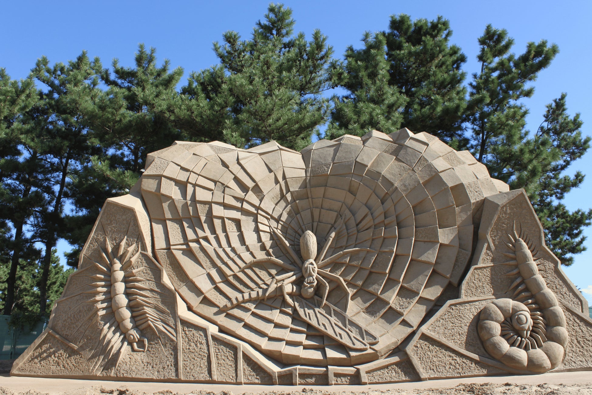 『あしや砂像展』は、芦屋海岸の砂と水だけで作られる砂の彫刻を展示します。