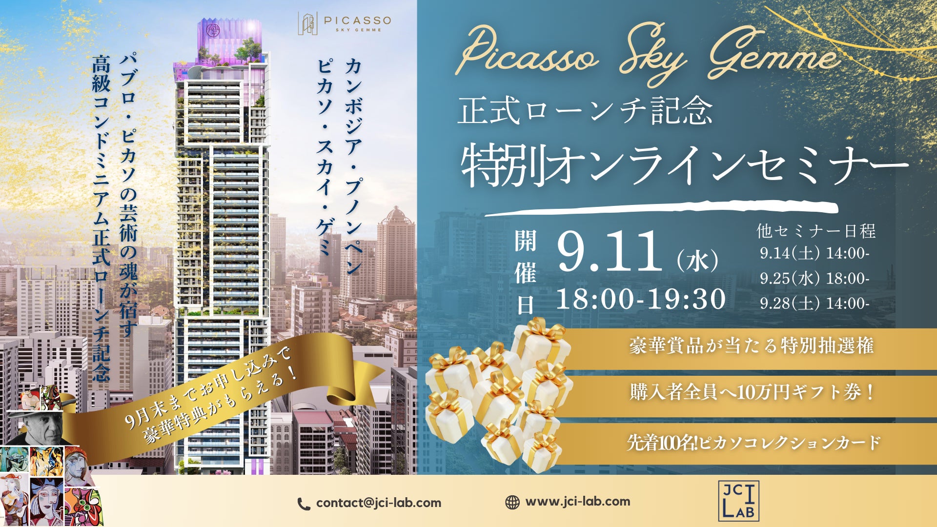 JCI LAB CO., LTD(本社:カンボジア・プノンペン、代表取締役:ヤン・ファン、以下「JCI LAB」)は、2024年9月11日(水)に、「Picasso Sky Gemme(ピカソ・スカイ・ゲミ、通称:Picasso2)」の正式ローンチを記念したオンラインセミナーを無料で開催することをお知らせいたします。