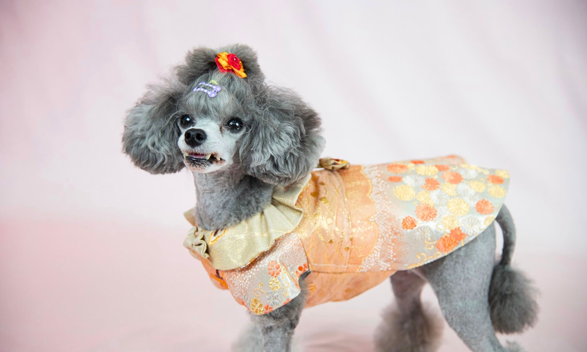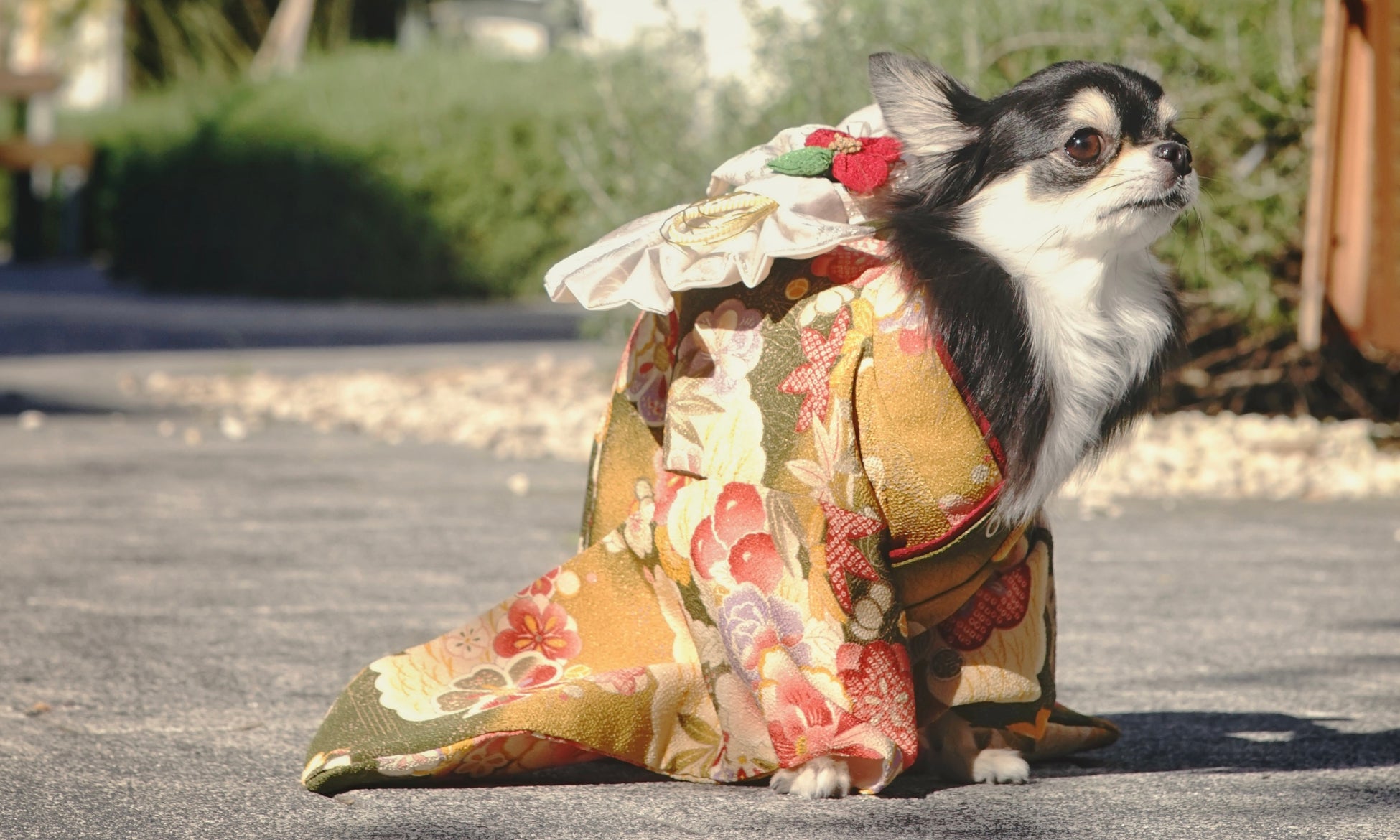 愛犬の特別な一日を彩る「犬用振袖」のご試着&撮影サービスをご用意しました。素敵な振袖を、無料でご試着いただけます。愛犬に西陣織ドッグウェアや振袖を着せ、サイズ感やデザインを確認しながら特別な装いを体験できる絶好の機会です。サイズはSS〜Lまでご用意しています。(以下4点)
