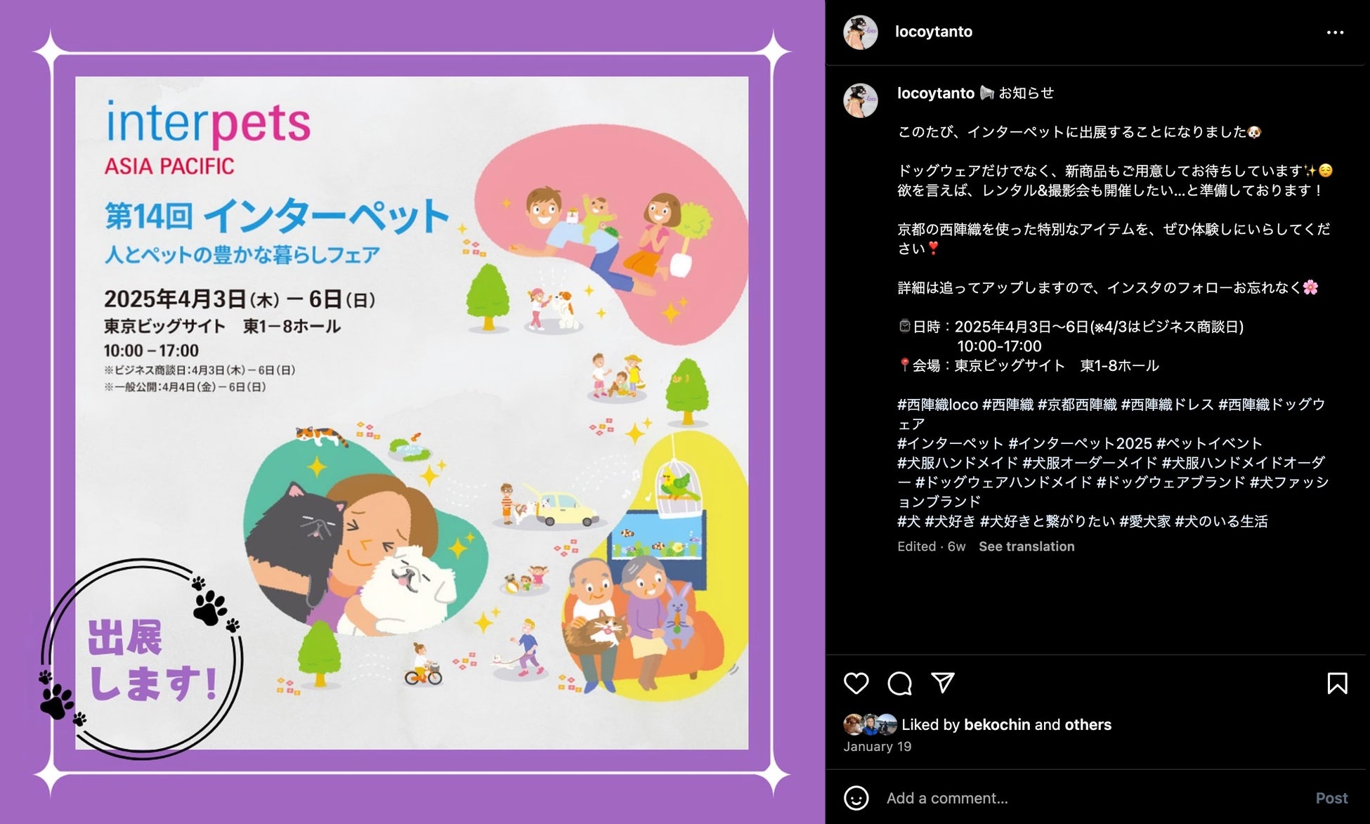 【イベント出展】西陣織ドッグウェアブランド『loco』、日本最大級のペットイベント「インターペット」に初出展!