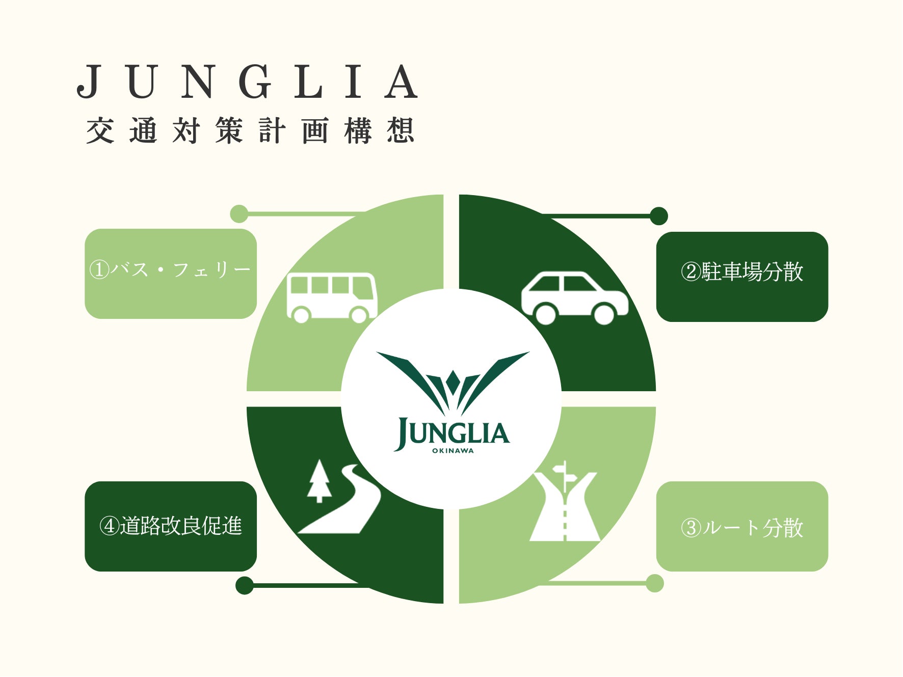 株式会社ジャパンエンターテイメント(沖縄県名護市:代表取締役 CEO 加藤健史、以下ジャパンエンターテイメント)は、2025年の開業を目指す沖縄北部のテーマパークJUNGLIAにおける交通対策計画の構想を発表しました。2020年から現在まで、第三者機関を通して継続的に交通シミュレーション調査を行い、国や地域行政、地元住民の方々との対話を重ねてきました。来年の開業に向けて、地域との連携をさらに強化し、交通渋滞の抑制(緩和)・交通利便性の維持向上・北部来訪者の観光利便性の向上を図ります。
