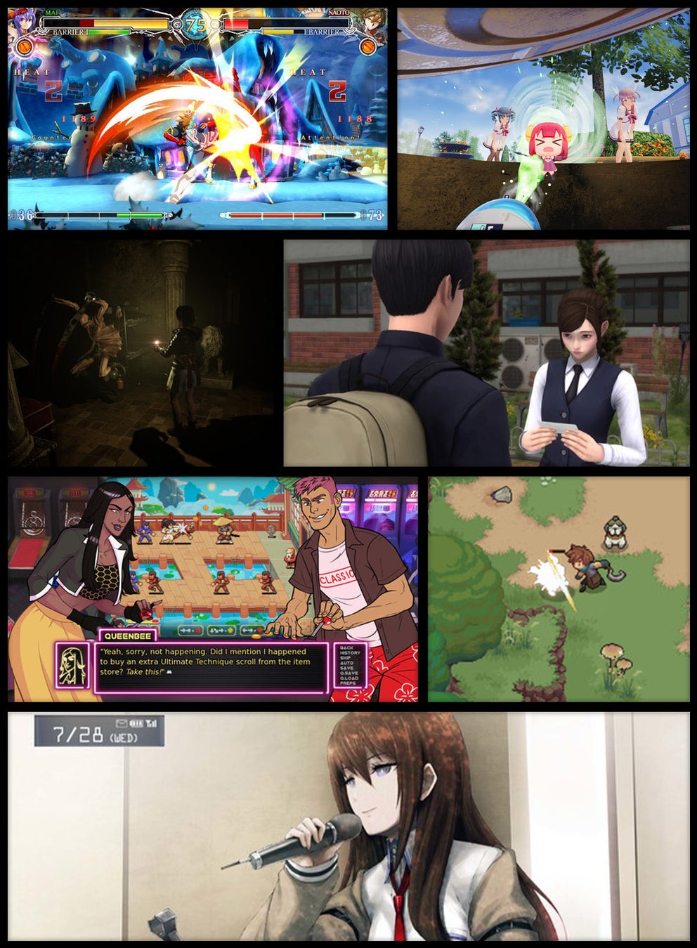 一方、『Arcade Spirits』は、その魅力的な物語と多様なキャラクターによって成功を収め、ゲーム文化という活気に満ちた世界の中で、さまざまな背景、アイデンティティ、人間関係を祝福することで、プレイヤーに爽やかで包括的な体験を提供し、幅広い層の共感を呼びました。『White Day: A Labyrinth Named School』は、その雰囲気のあるホラー、激しい謎解きゲームプレイ、本物の恐怖を呼び起こす能力を通じて、サイコホラーやサバイバルゲームのファンの共感を呼び、カルト的な名作となった。『Gal*Gun』はその独特で風変わりなスタイルで境界線を押し広げ続けており、格闘ゲーム『BlazBlue』シリーズは対戦格闘ゲームシーンの要として確固たる地位を築いています。手に汗握るSFミステリービジュアルノベル『Steins;Gate』は、魅力的な物語を欧米の観客にもたらし、日本国外でのビジュアルノベル人気の火付け役となりました。