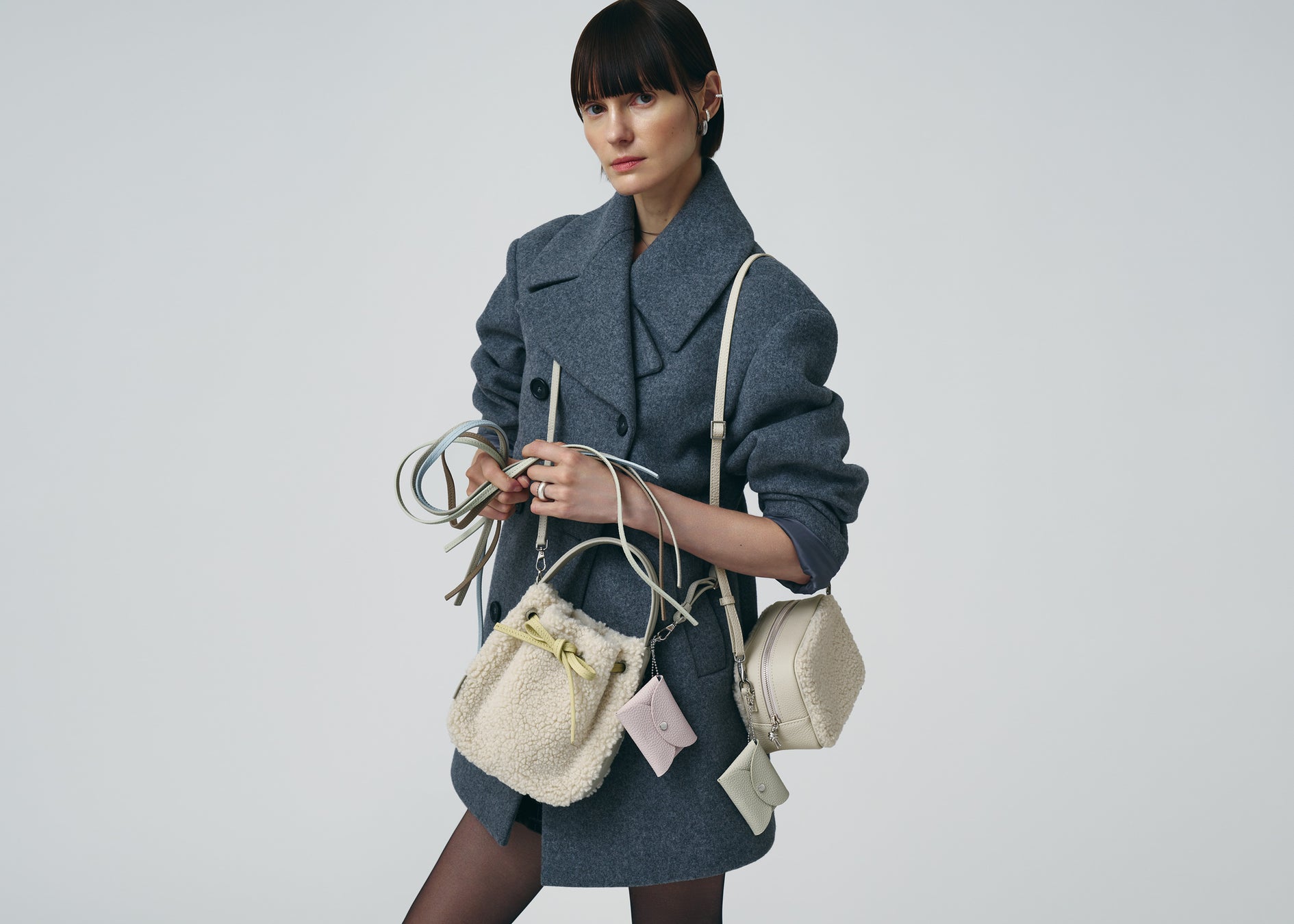 機能性を重視したシンプルなデザインの万能ショルダーバッグ「Anyway(エニウェイ)」の秋冬におすすめなポップアップ限定バージョンが登場。バッグの側面にボアを施し、ユニークなテクスチャーでパンチを加えました。ジッパーの引き手にはノットのチャーム、バッグのサイドにはタッセルつき。貴重品をストレスなく持ち歩くことができるサイズでポシェットとしてお使いいただけるほか、バッグinバッグとしても活躍。