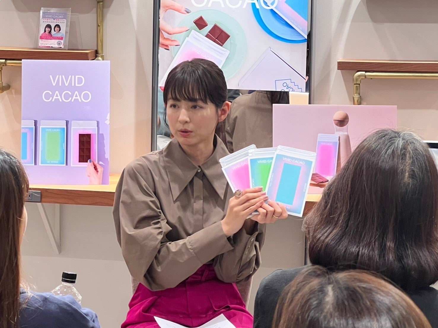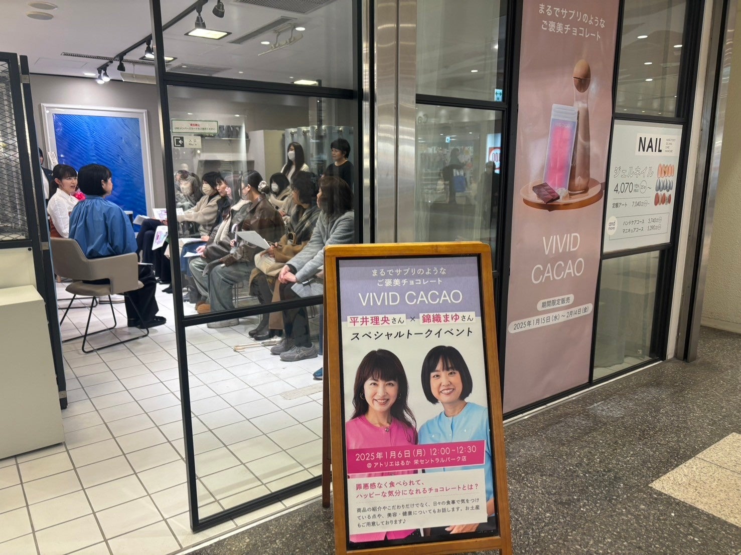 全国販売に先駆けて、1月上旬、VIVID CACAO代表平井理央と錦織まゆが、名古屋、大阪、福岡、横浜、東京のアトリエはるか各店舗にてトークショーを開催しました。