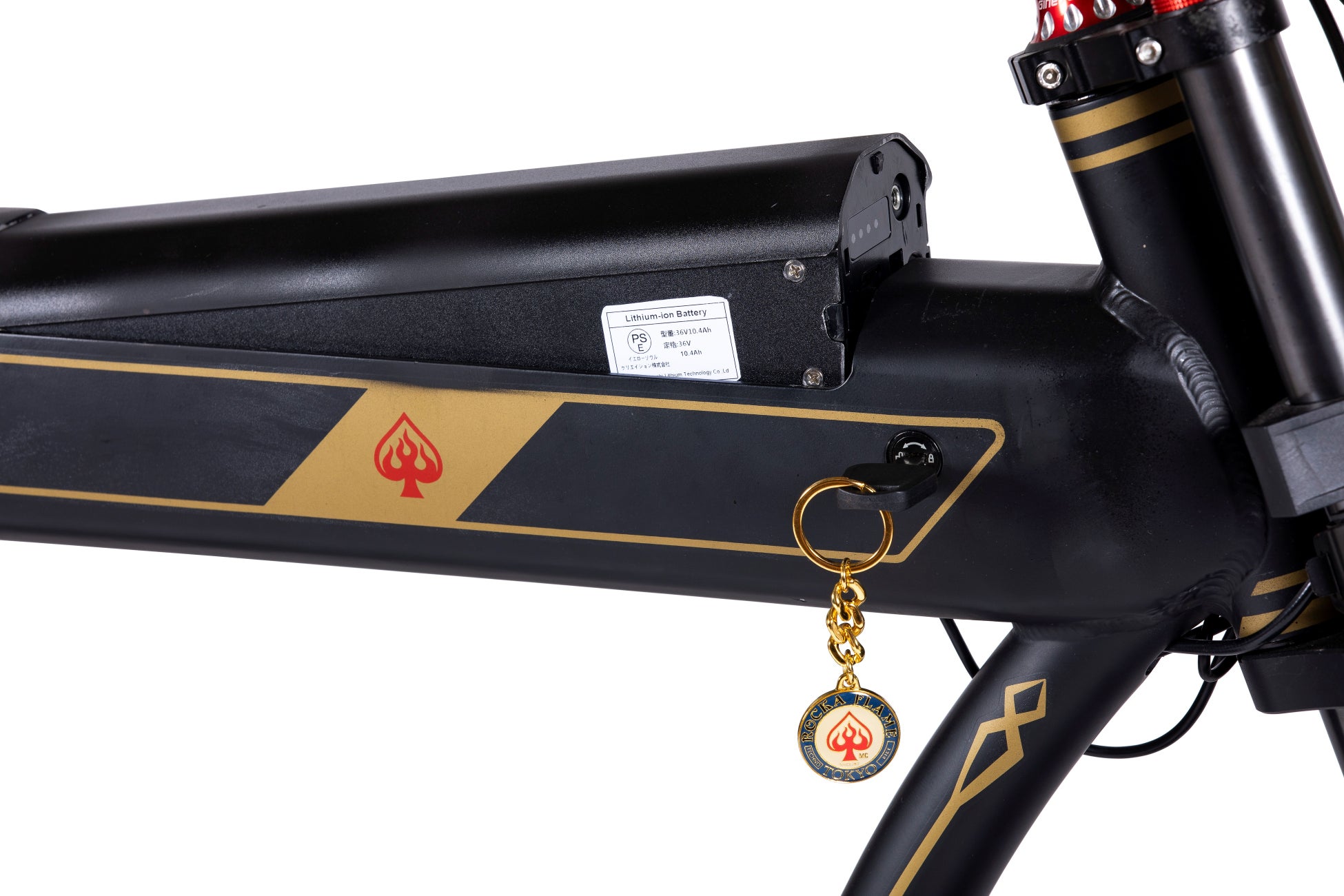 バッテリーは車体に内蔵するインチューブバッテリーを採用することにより、スマートなスタイリングを実現しました。簡単な操作で本体からの着脱が可能な設計を採用しているため、ご家庭やオフィス、外出先でも柔軟な充電スタイルを選択でき、多様なライフシーンに対応。さらに、付属の専用鍵によりバッテリーの盗難リスクを抑制します。容量も25.2V換算で約14.8Ah(36V 10.4Ah、374Wh)と、一般的な電動アシスト自転車と比較して大容量のバッテリーを搭載することにより、最大アシスト可能距離は50~70キロを実現しました。