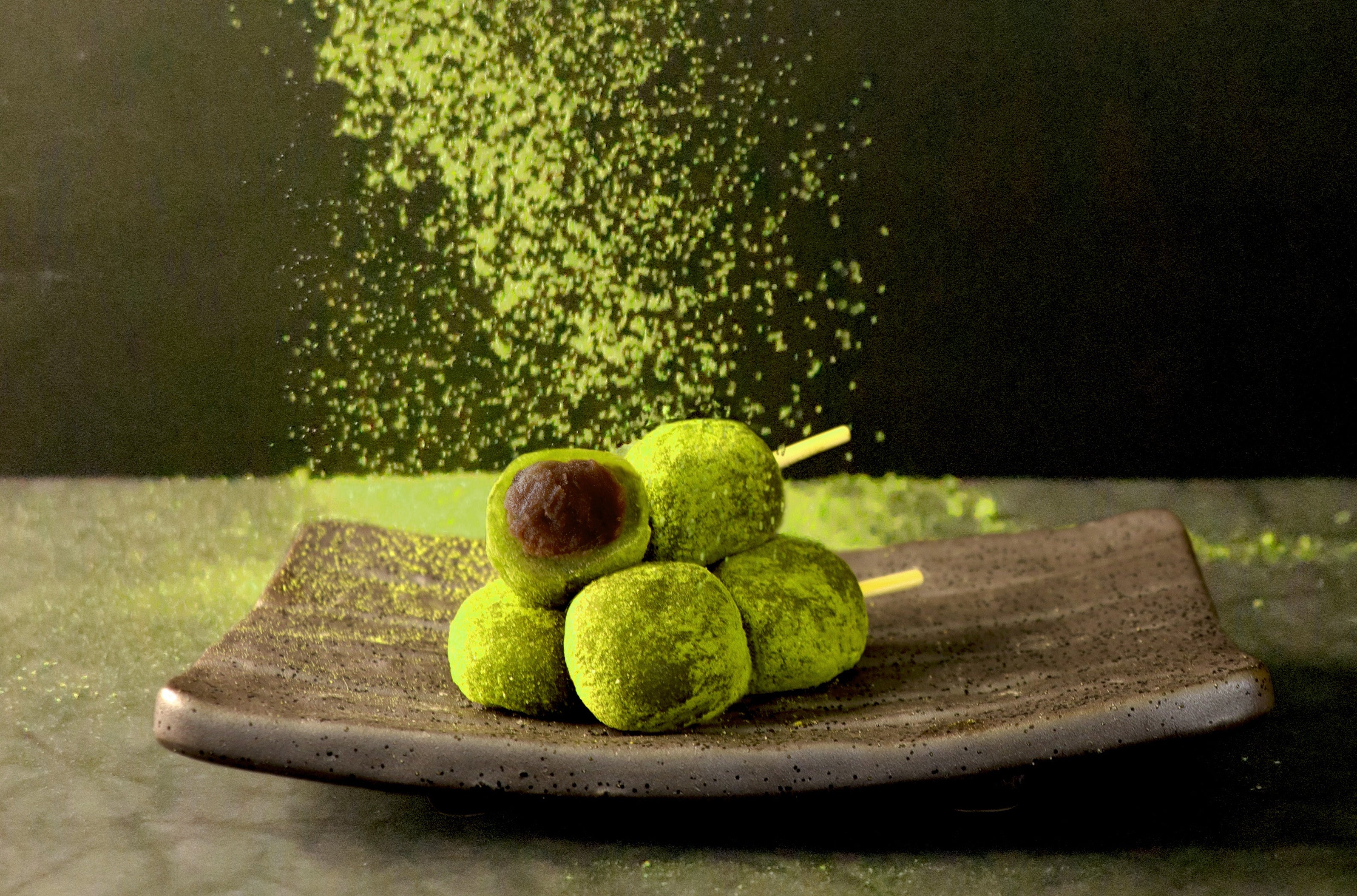 もちもちの餅生地に抹茶粉をふんだんに練りこませ、さらに外側からも抹茶粉をまぶすことで、中からも外からもより抹茶の風味を感じることができます。
