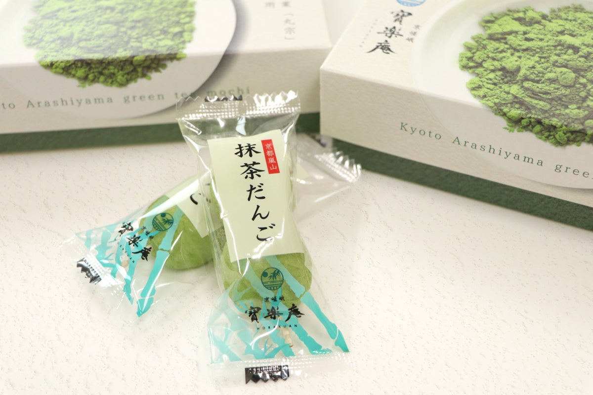 京都府内でお土産菓子を展開する京嵯峨寶楽庵は、京都のイメージで根強い「抹茶」と、京都らしい和菓子である「だんご」(餅)を合わせた、『京都嵐山抹茶だんご』を販売しております。その商品のひとつである6串入の袋タイプのデザインを2025年4月から新たな装いで発売いたします。