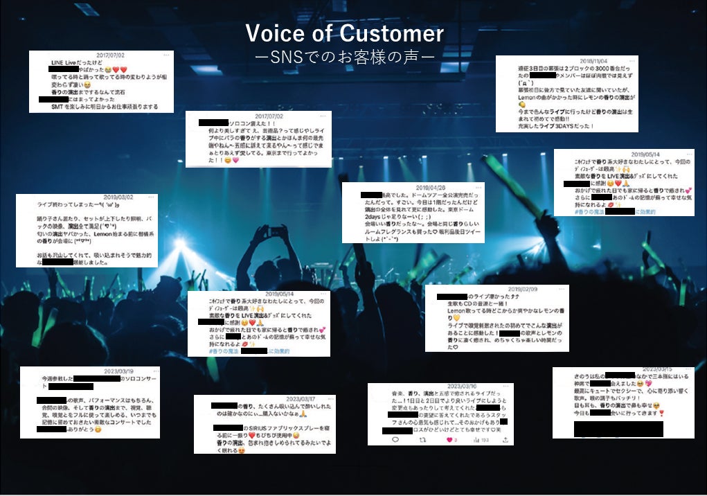 ライブでは楽曲の世界観に合わせた香り演出等独自の技術&アイデアで多くの観客を魅了すると共に、香りならではの話題性や効果が業界関係者の間でも話題になっています。