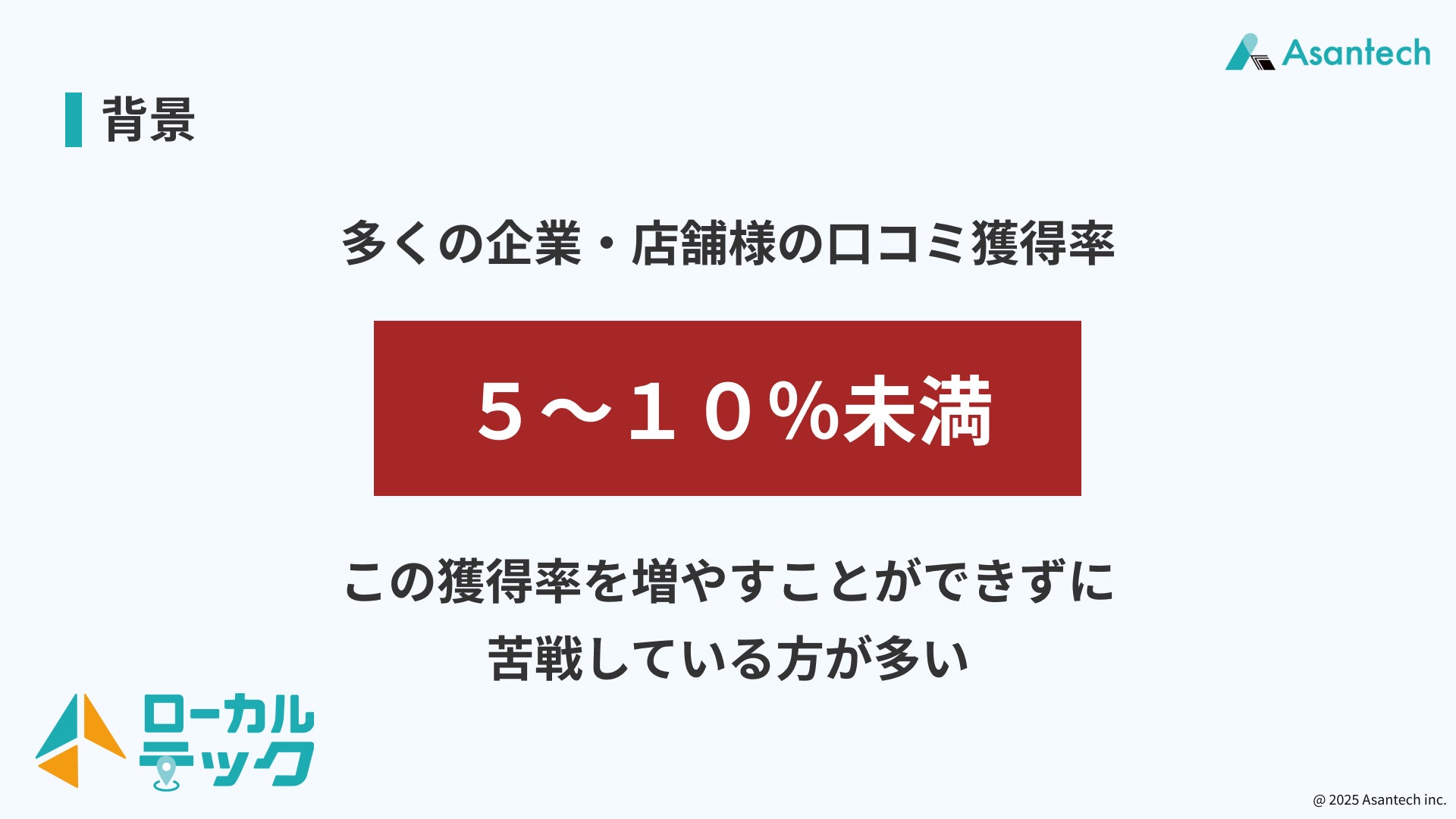 Asantech株式会社が全国500名以上の現場スタッフを対象に実施したヒアリング・研修の結果、「来店・来場後に口コミを投稿してもらえている割合」は平均5%未満という実態が判明しました。