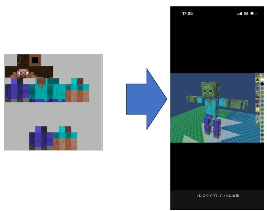 さらにマインクラフトのスキンデータをもとに、ワンボタンでボクセルキャラを作ることができる機能もございます。