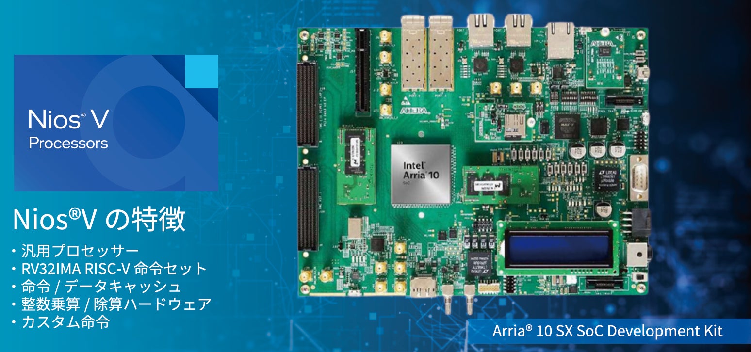 Altera社のNios®️Vプロセッサーとは、オープンソースのRISC-V命令セットアーキテクチャをベースとしたFPGA向けの次世代ソフト・プロセッサーです。