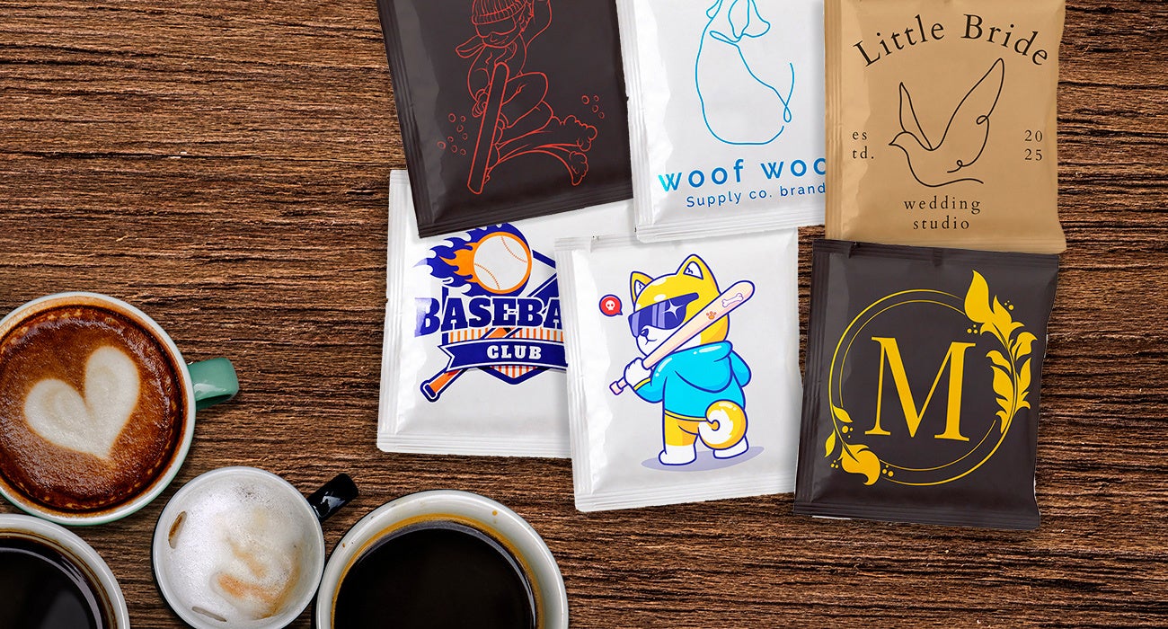 企業ロゴやオリジナルキャラクターをコーヒーバッグにデザイン