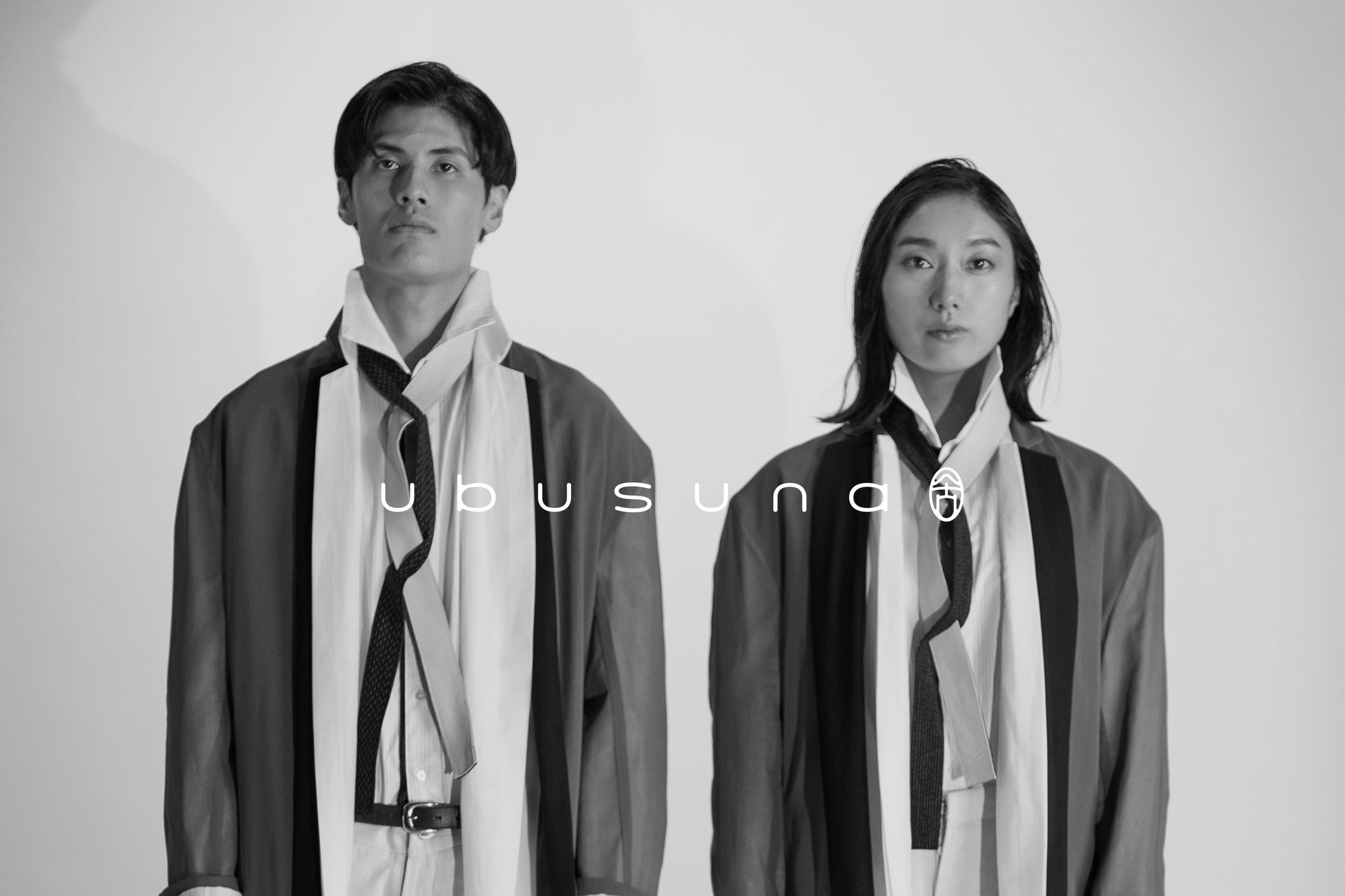 伝統的な縫製技術や手仕事、土着素材を活用しながら、未来への希望を感じさせる新しいファッションの形を模索し、洋服でも和服でもない、長く愛せる「日本の服」をコンセプトとして2024年1月に「ubusuna」が誕生しました。男性、女性や、年齢の制約から解き放たれることを目指したそのスタイルは、大量生産では出会うことがなかった、ボタンホールやパイピングへも丁寧さが行き届く、土地土地の職人や縫製の手仕事によるものです。