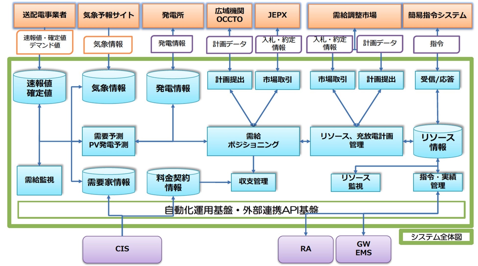 ACシステムは蓄電池、分散電源、需要DR等電源リソースを需給調整市場等各電力市場に有機的に連携するシステムであり、既存の需給管理機能と密接に連携して自動化による効率化を目指して参ります。