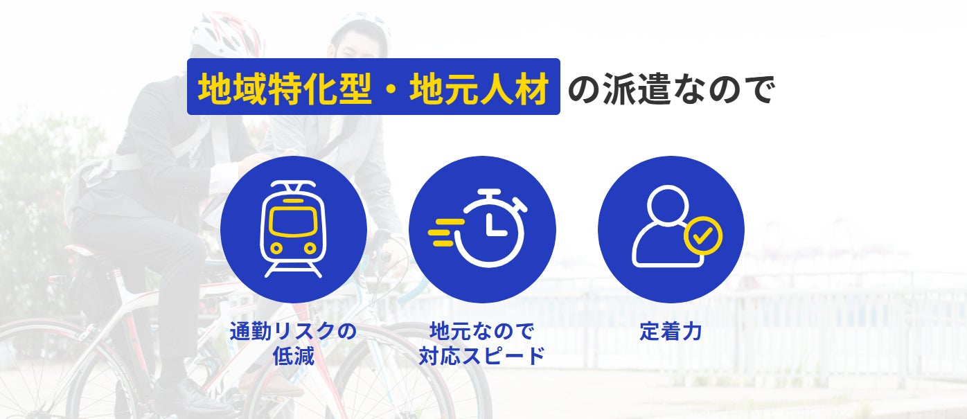 「ジモクル」は、勤務地・居住地を軸にした独自のマッチング設計により、 定着率の高い人材派遣を実現するサービスです。