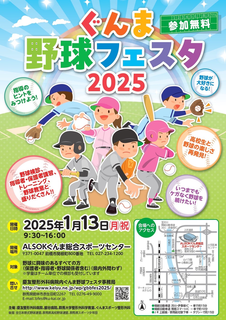 株式会社GATHERは、[ぐんま野球フェスタ2025] 2025年1月13日(月)(祝)- 慶友整形外科病院、鶴谷病院、群馬大学整形外科学教室、ぐんまスポーツ整形外科主催、開催をサポートします。