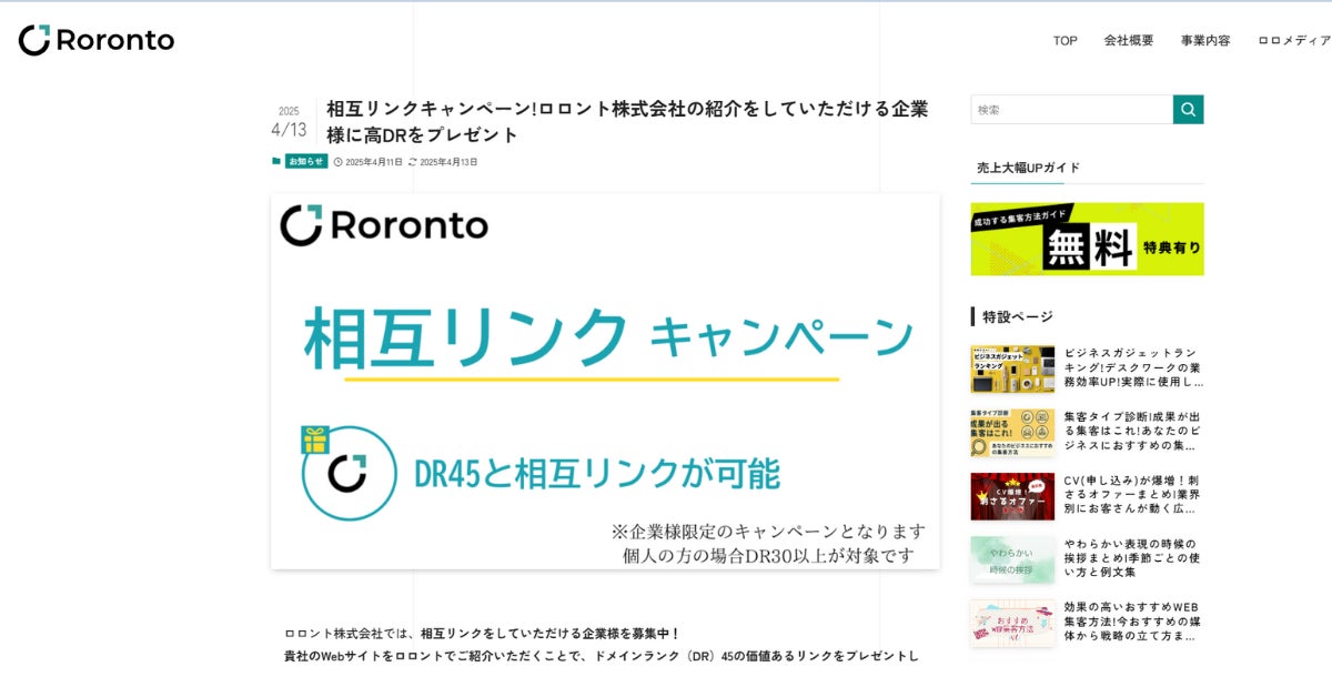 ロロント株式会社(本社:東京都、代表取締役:笹谷和宏)は、2025年4月、『成果を出すことに特化したビジネスメディア』として「ロロメディア」を正式リリースいたしました。