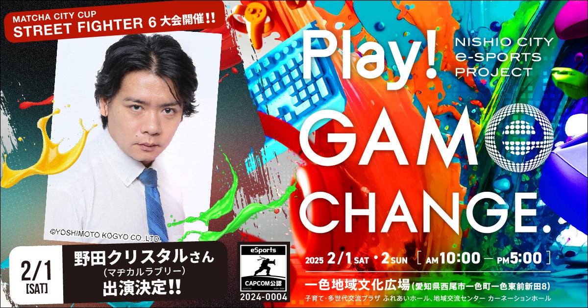 愛知県西尾市は、2025年2月1日(土)2日(日)にeスポーツイベント「Play! Game Change.」を一色地域文化広場にて開催いたします。
