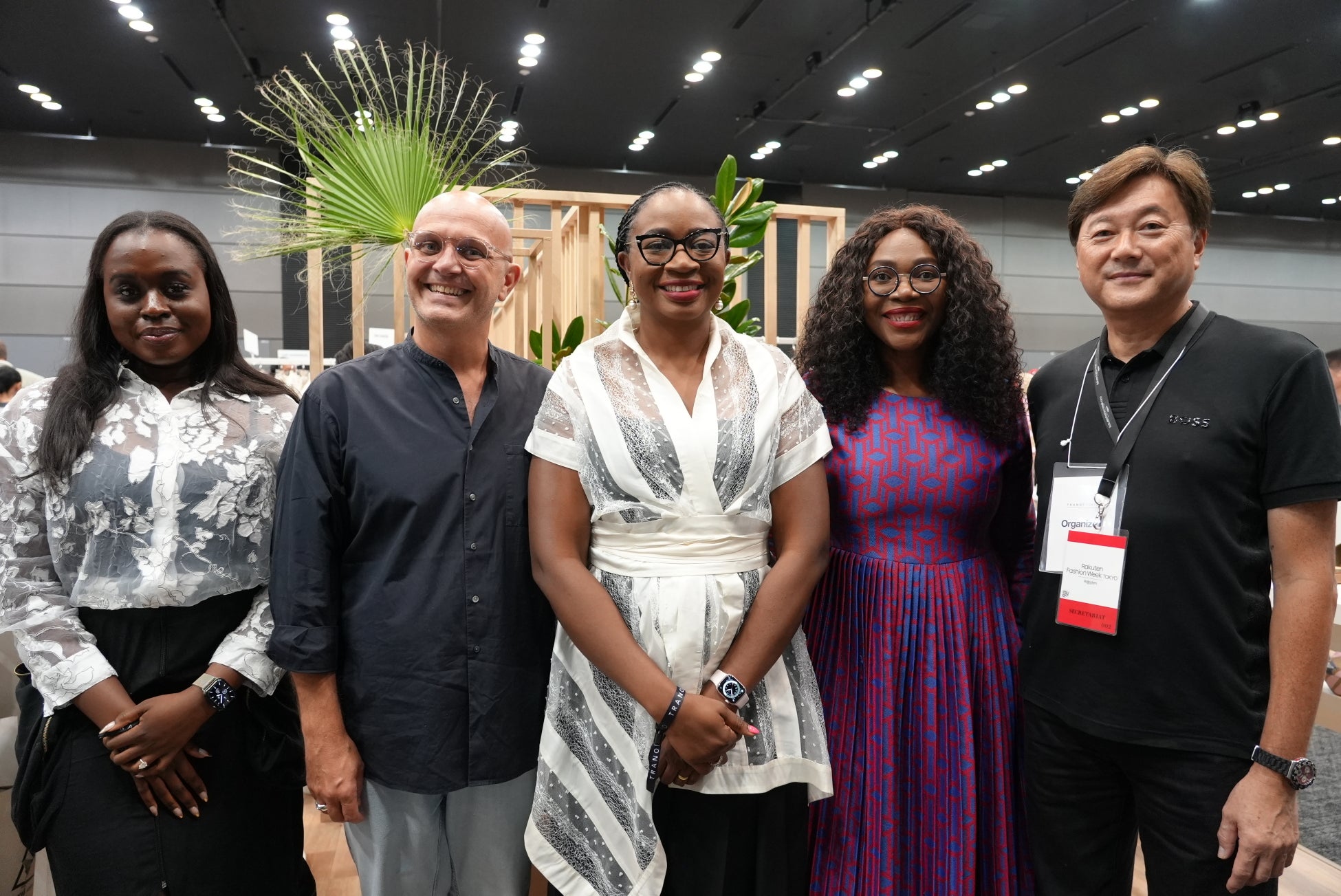 イベント当日の様子(写真左から):Chryss Adomakoh (Analyst, IATB, Afreximbank)、Boris Provost (CEO – Tranoi)、Anne Ezeh (Director Communications and Events, Afreximbank)、Khanyi Mashimbye (Manager, IATB, Afreximbank)、Hiroshi Komoda (Executive Director - Japan Fashion Week)