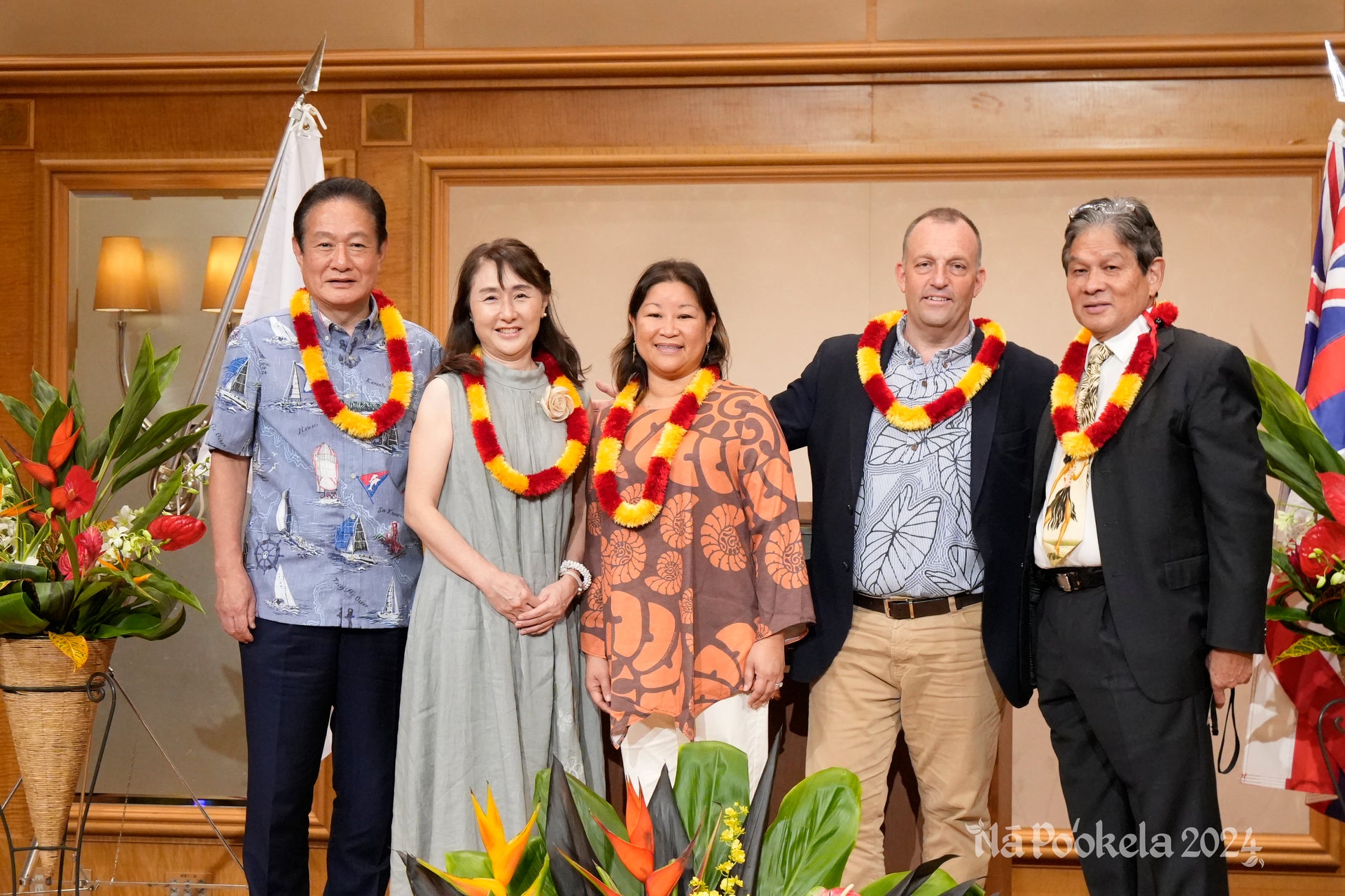 「Nā Po‘okela」はハワイと日本を文化でつなぐ目的で横浜の地で開催し、メリーモナークフェスティバルが開催されているハワイ島ヒロ、そして「Nā Po‘okela」を開催する横浜が文化的・経済的交流を持ち、互いに発展することを祈念し、9/7(土)の開演前に横浜ロイヤルパークホテルにて会見が行われました。
