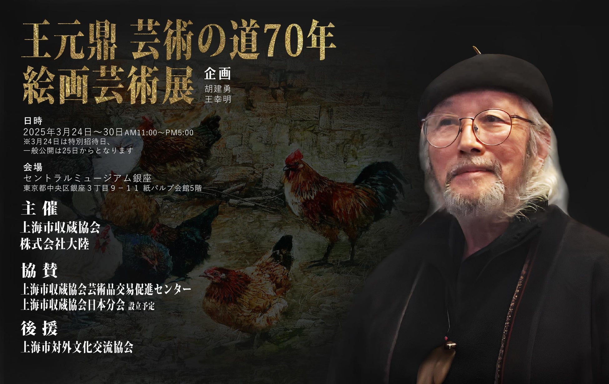 株式会社大陸(本社:東京都新宿区、代表取締役 王幸明)が共同主催となった「王元鼎 芸術の道70年 絵画芸術展」が、3月24日に盛大なレセプションパーティーを経て開幕いたしました。豊かな色彩と繊細な陰影が織りなす珠玉の作品群が、多くの来場者を魅了しています。東京・銀座のセントラルミュージアム銀座にて3月30日まで好評開催中。