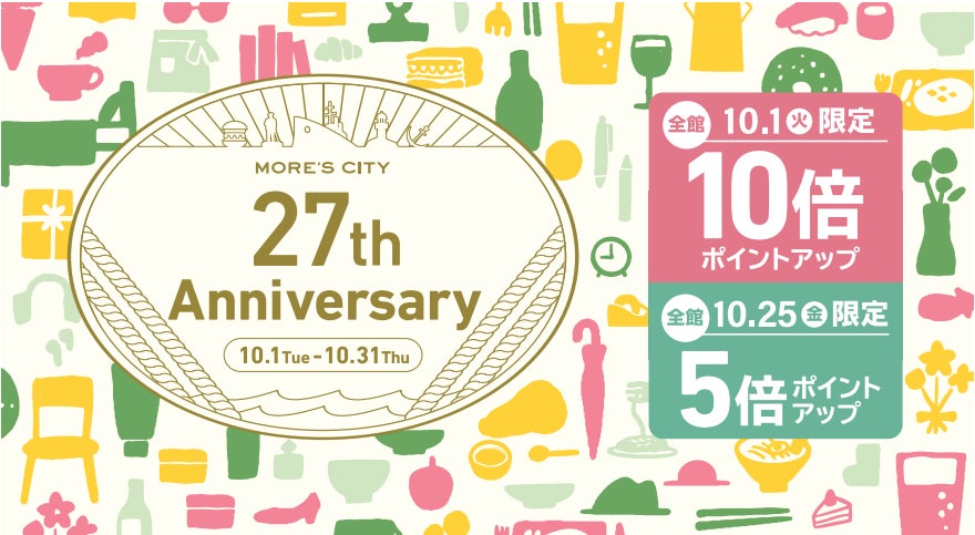株式会社横浜岡田屋(本社:神奈川県横浜市西区、代表取締役社長 岡田伸浩)が運営するショッピングセンター「横須賀モアーズシティ」(神奈川県横須賀市)は、2024年10月1日(火)に開業27周年を迎えます。開業以来、地元地域の多くの皆様にご支援いただき、感謝の気持ちを込めて、お客様に楽しんでお買い物をしていただけるアニバーサリー企画を開催いたします。