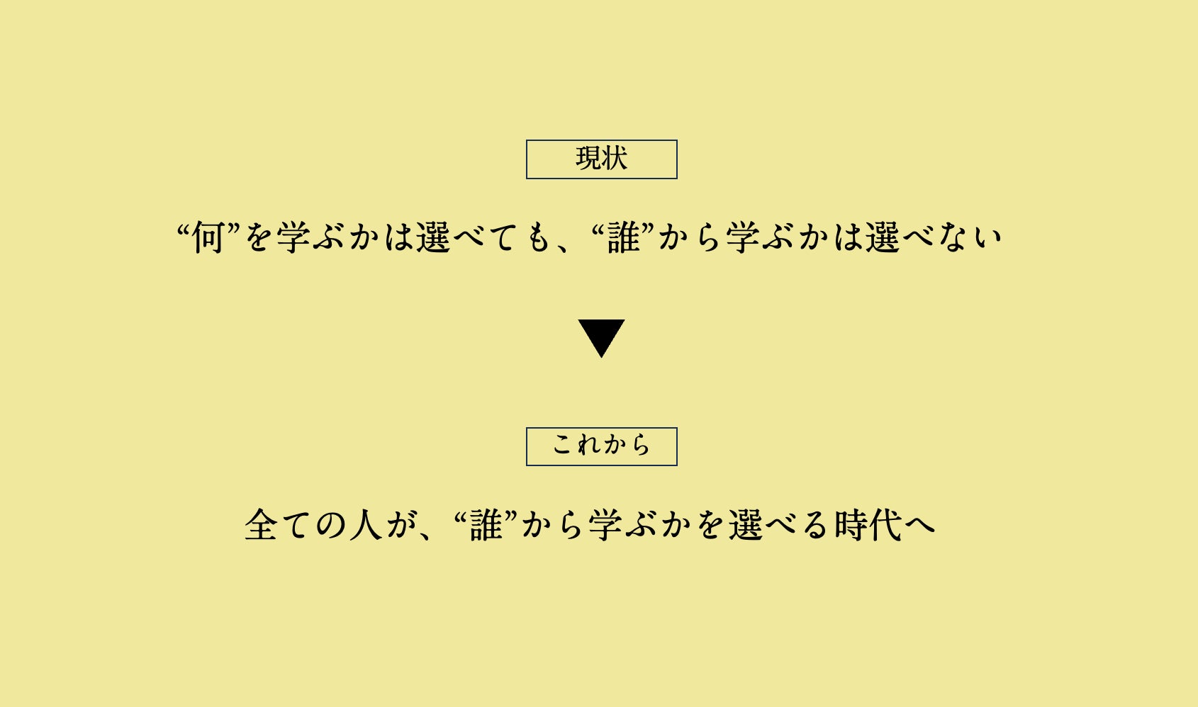 「THE LESSON」は偉人の教えを民主化することで、"何を"学ぶかは選べても、"誰から"学ぶかは選べない、そんな教育の実情の変革を目指す。 また、先人達の言葉を伝えることで自分自身の才能や可能性を信じ、羽ばたくためのきっかけを作る。