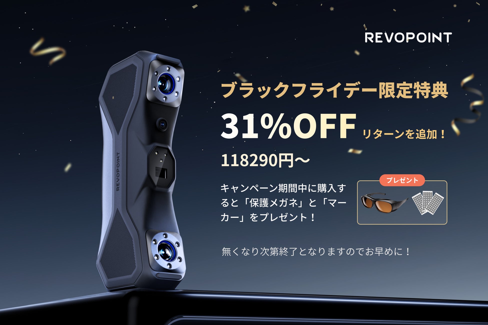 現在MetroXブラックフライデー特典が実施しています!31%OFF割引で保護メガネとマーカーポイントをプレゼント!118290円だけレーザー3Dスキャナーを手に入れ!お見逃しなく!製品の詳細やご購入については、キャンペーンページをご覧ください。