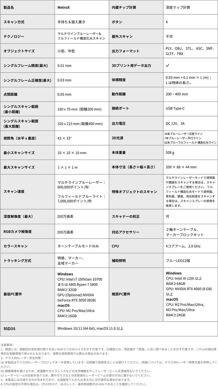 MetroXは、Revopointが開発した革新的な3Dスキャナーで、ブルーハイブリッドレーザーラインと全フィールド構造光技術により、さまざまなニーズに応えられる高精度かつ経済的なソリューションを提供します。